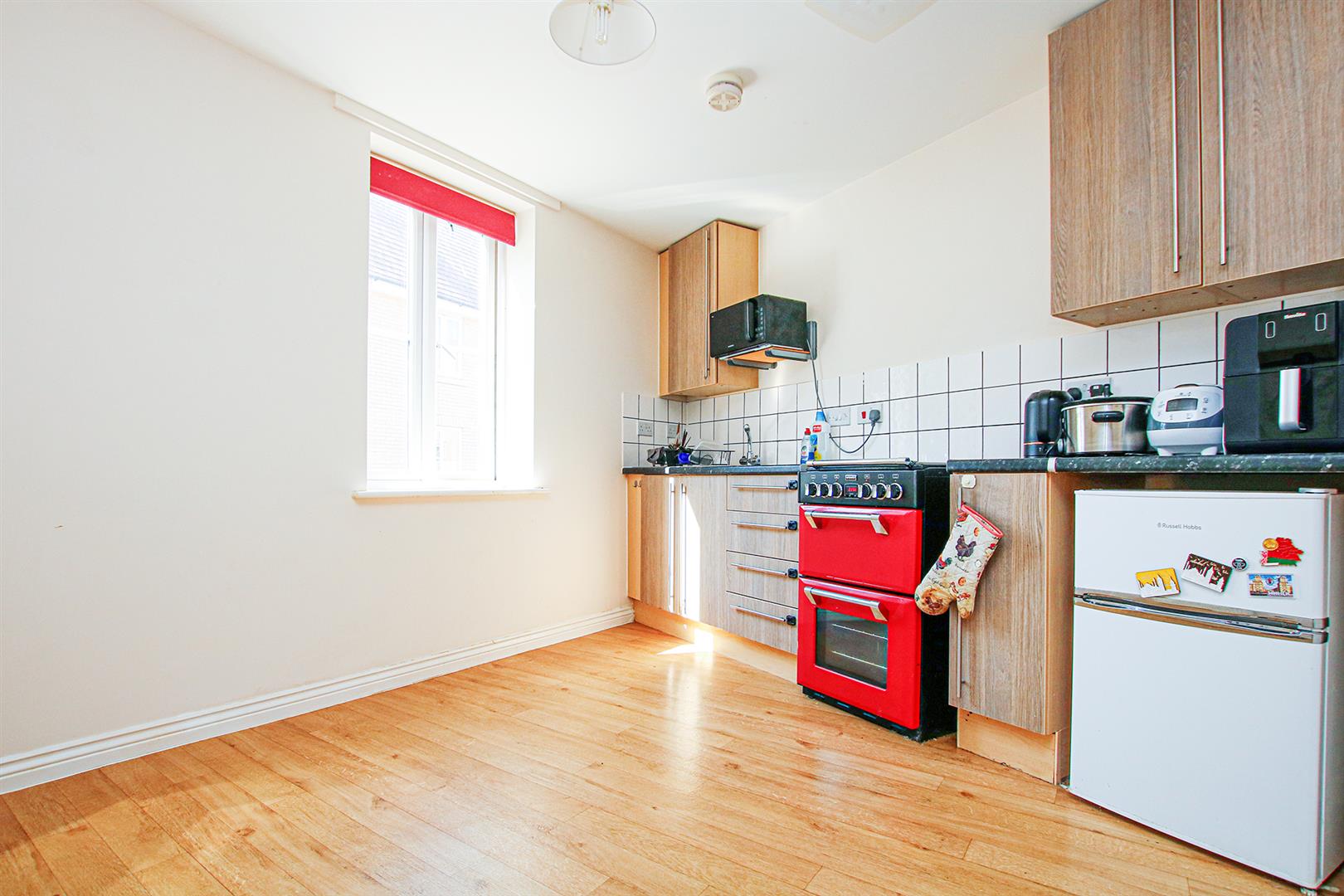 Fitted with a range of eye and base level cupboards with work top over. Stainless steel sink with drainer and mixer tap over. Tiled splashback throughout working area. Space for freestanding cooker and under counter fridge/freezer. Wood effect flooring. Window overlooking front aspect. Radiator.