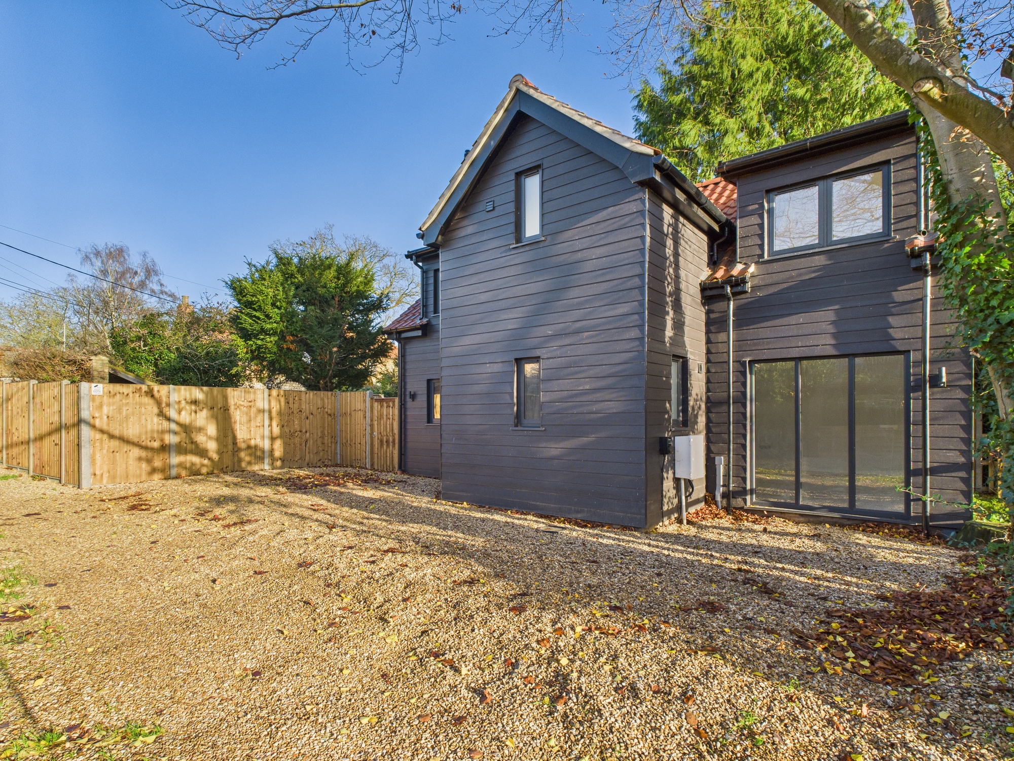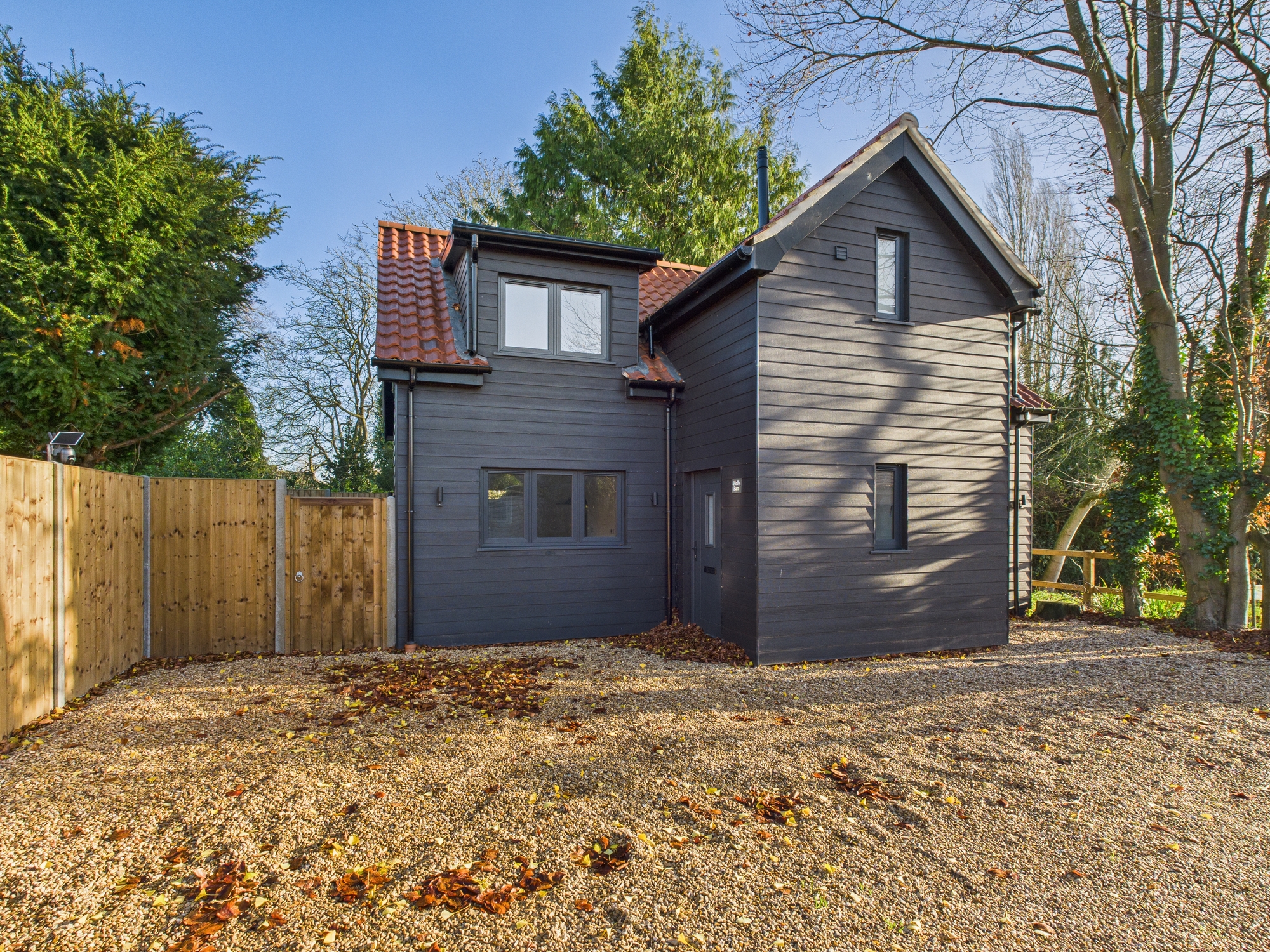 The lane to the front is owned by the property and leads to the private driveway for off road parking and is also utilised by the neighbouring properties. The garden to the side is a blank canvas enclosed by new fencing.