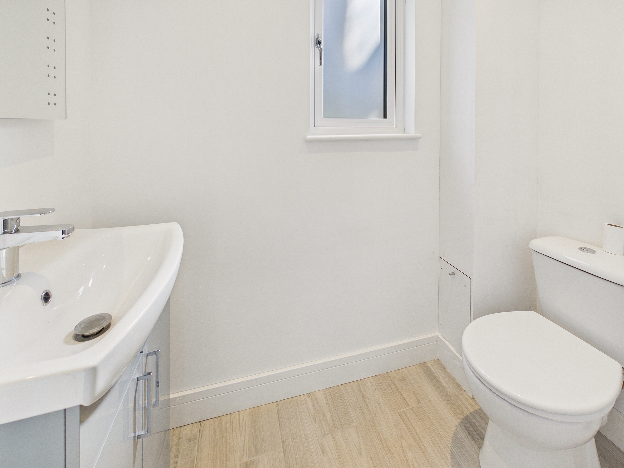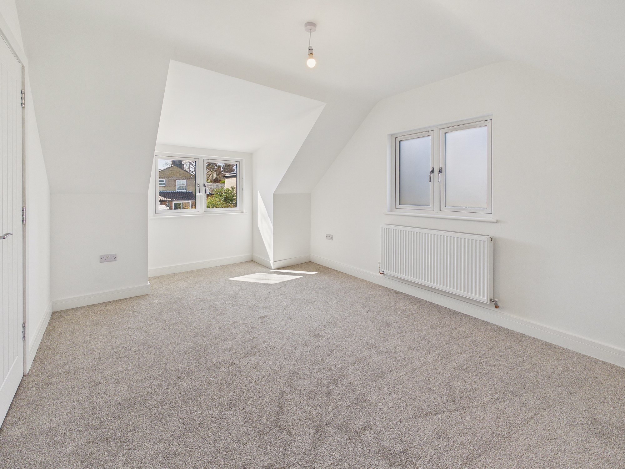 uPVC double glazed window to front, uPVC double glazed high level window to side, wall mounted double panel radiator.