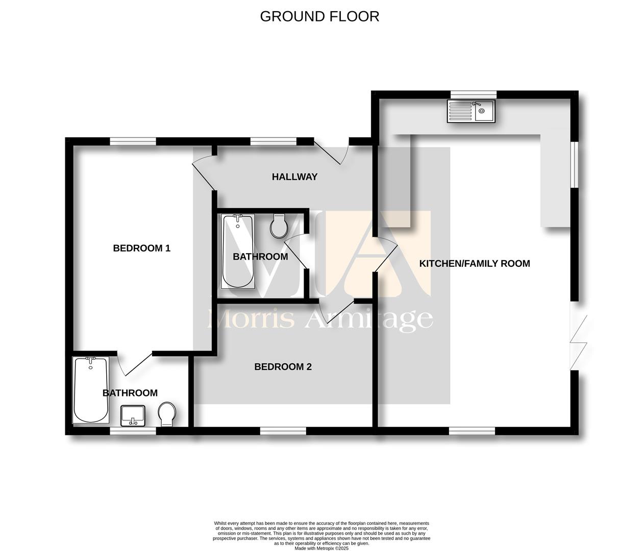 Generous sized kitchen/family room. Modern kitchen fitted with eye and base level storage units and working surfaces over, inset stainless steel sink and drainer with mixer tap over. Integrated appliances to include an oven and hob with extractor hood over, fridge/freezer and dishwasher.