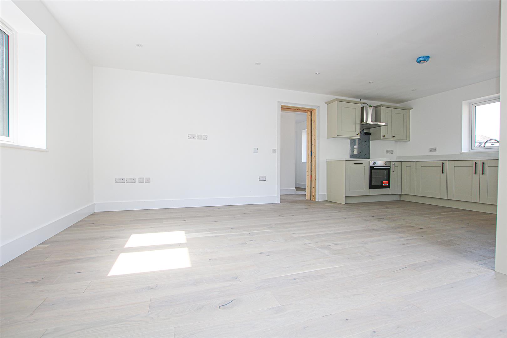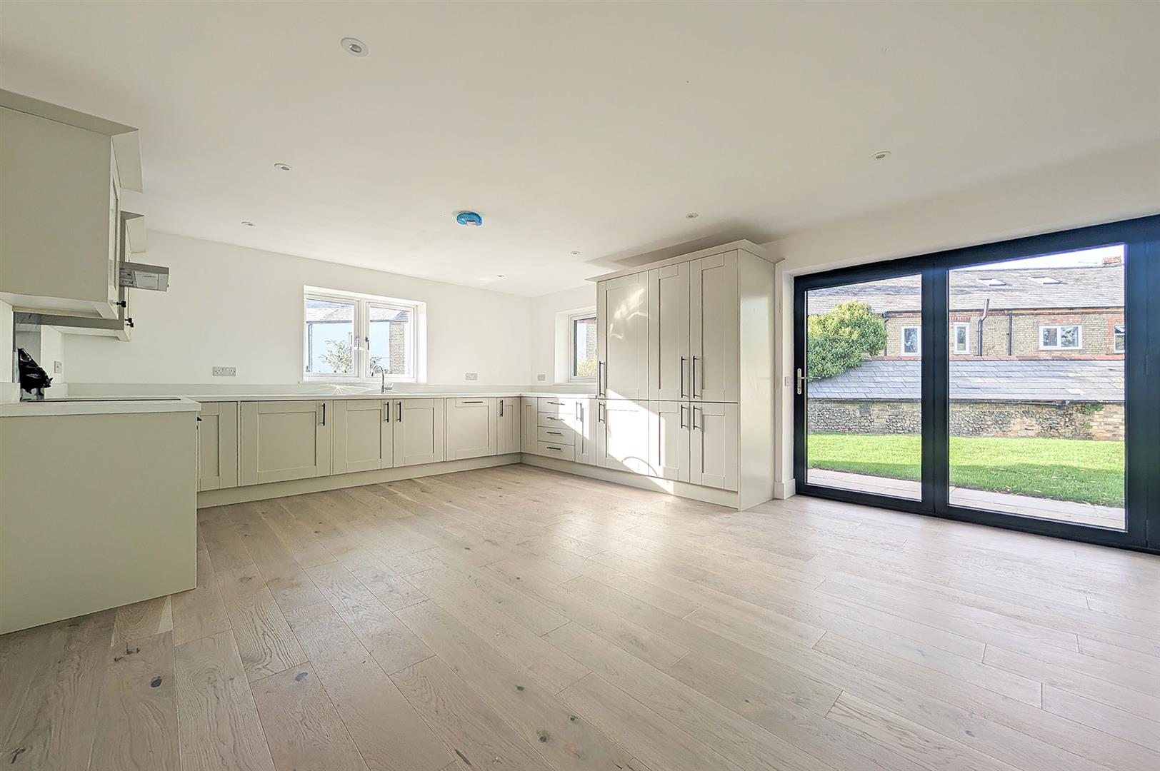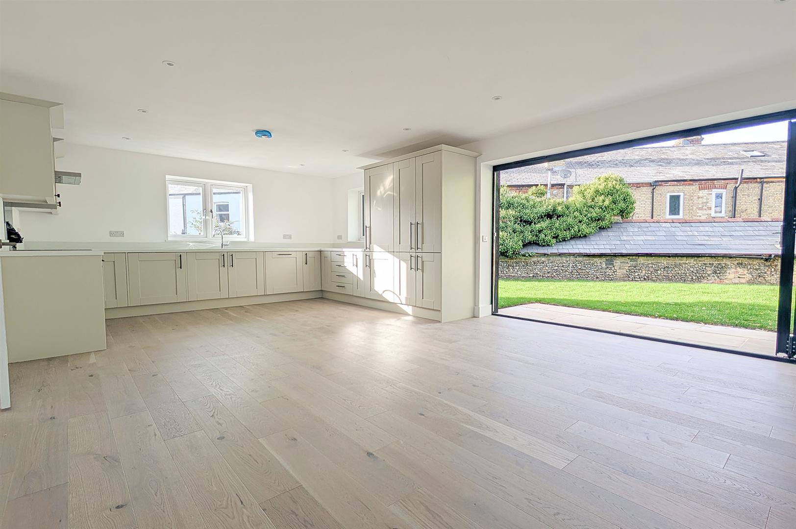 Ample space for dining table and chairs, laid wood effect flooring, windows to the side aspects and bi-folding doors out to the rear aspect.