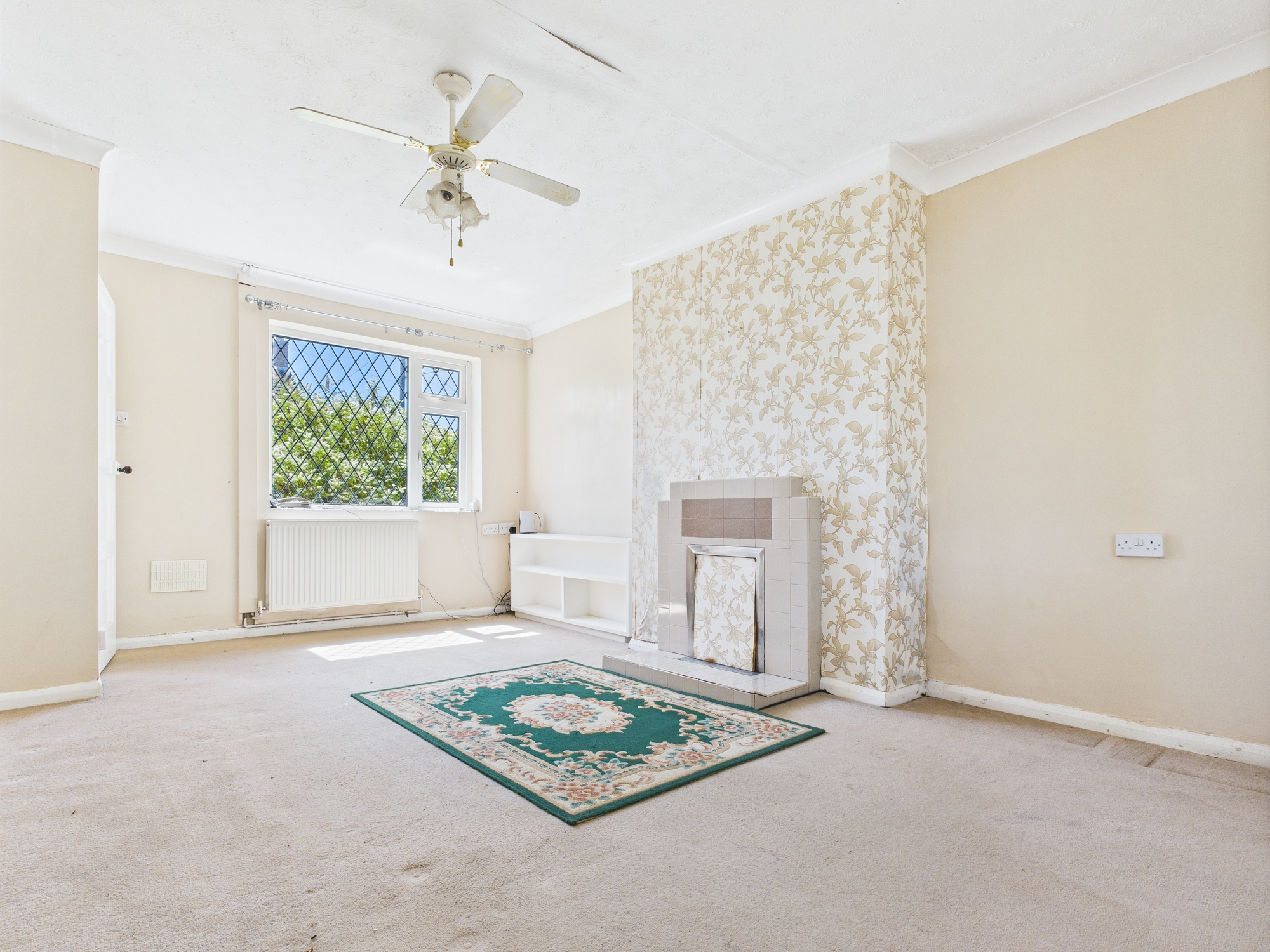 Windows to front and rear, 2 x wall mounted single panel radiators, fireplace, central ceiling fan, textured and coved ceiling.