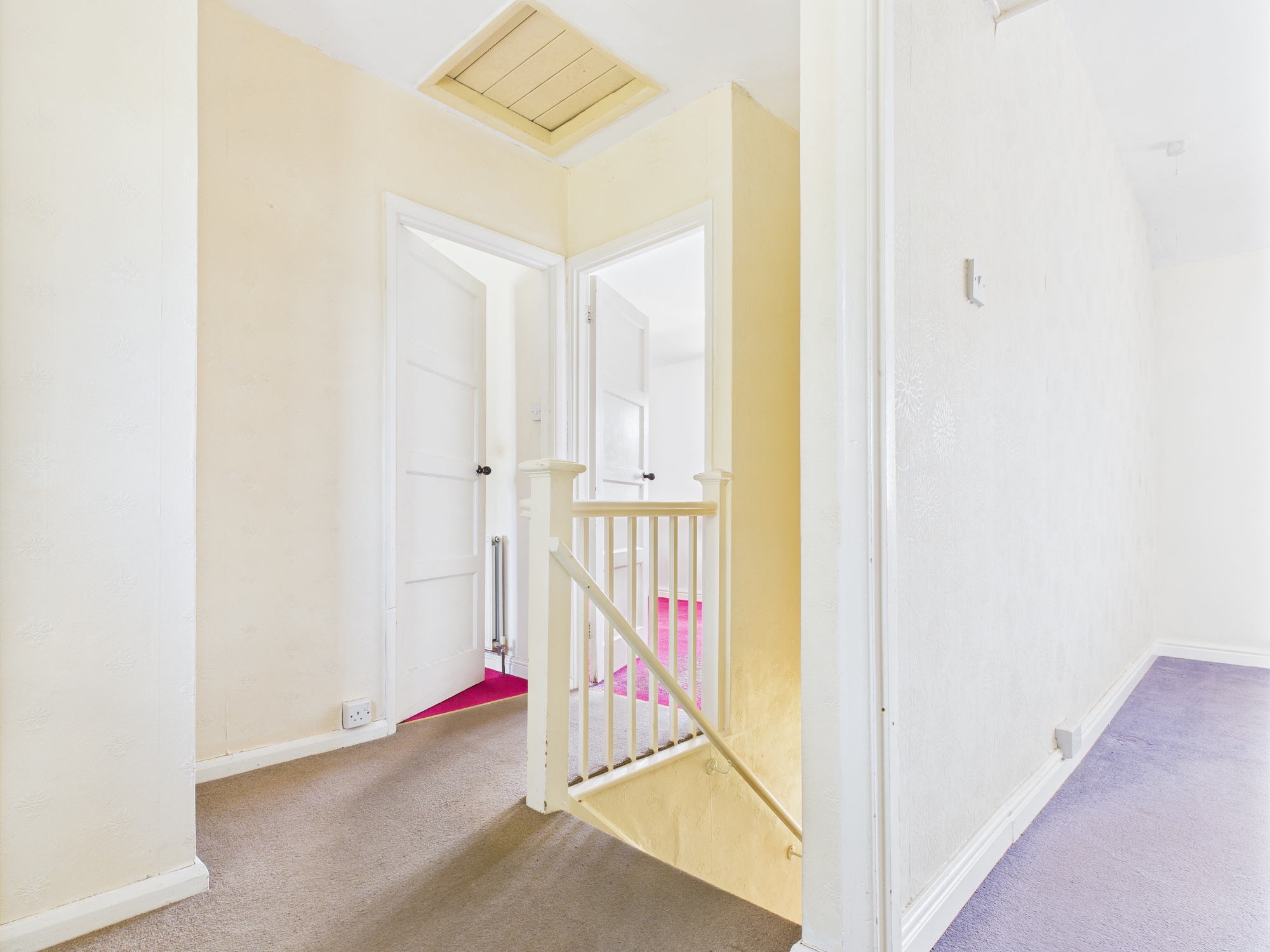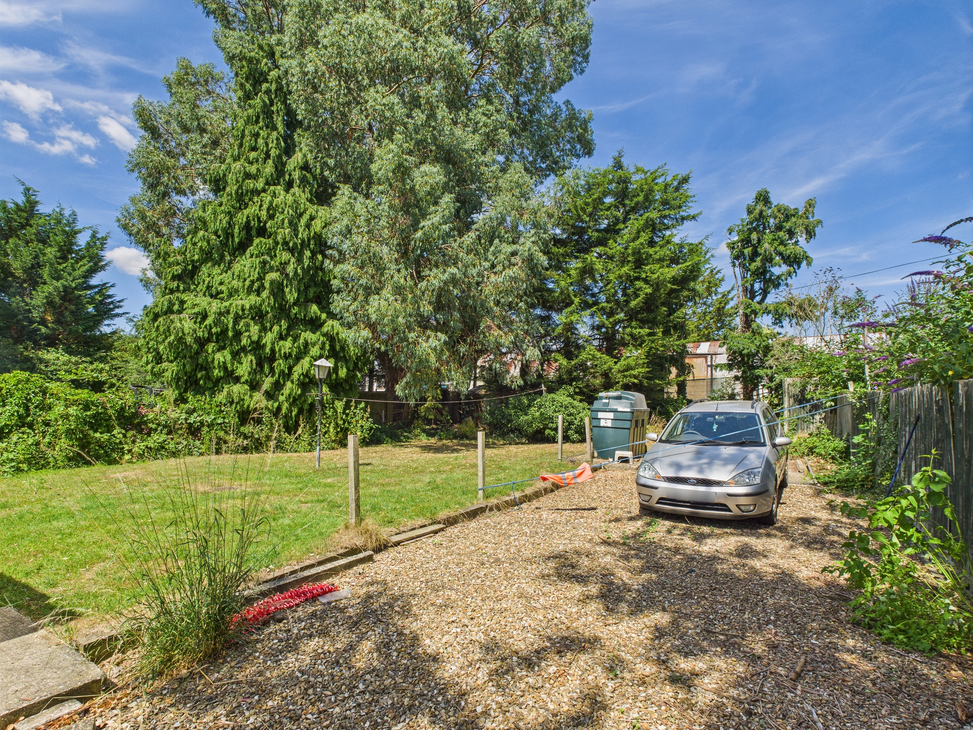 The front of the property is laid to lawn with a path leading to the front entrance door. The shingle driveway to the side provides odd road parking and leads to the rear garden which is also mainly laid to lawn with mature bushes and trees inset.