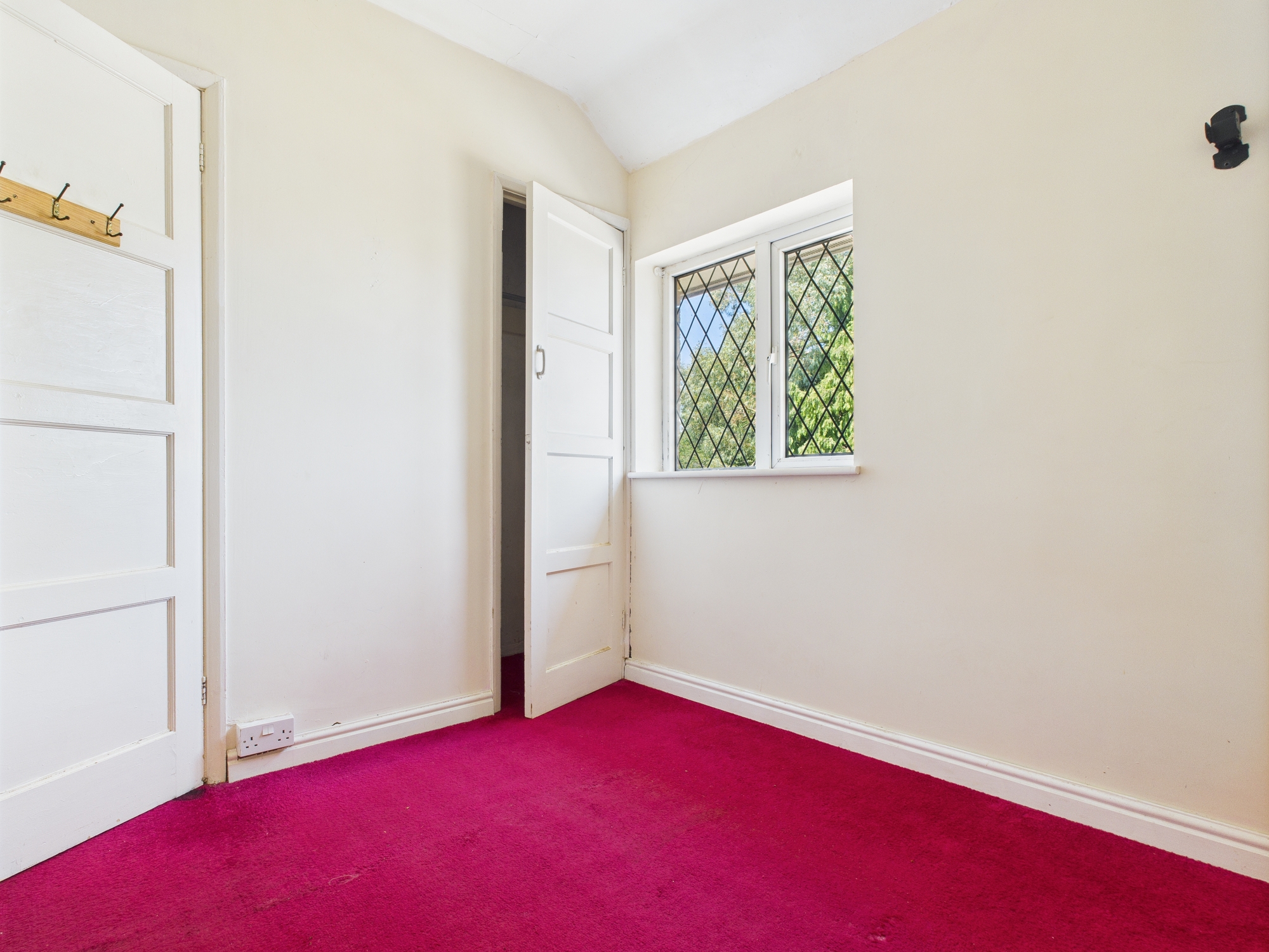 Window to rear, wall mounted double panel radiator, built in wardrobe.