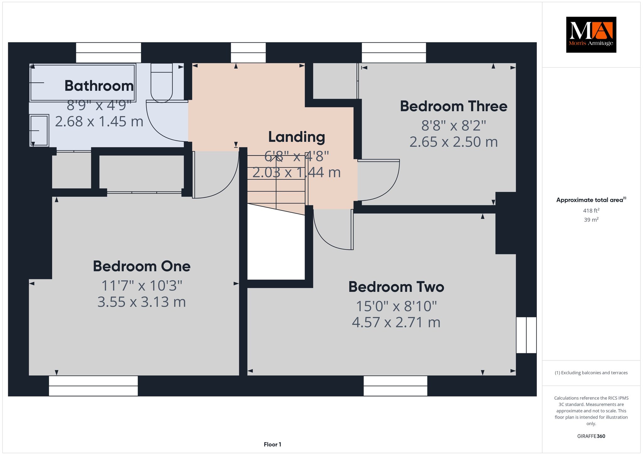 Bedroom Two 15’0” x 8’10” (4.57m x 2.71m)
