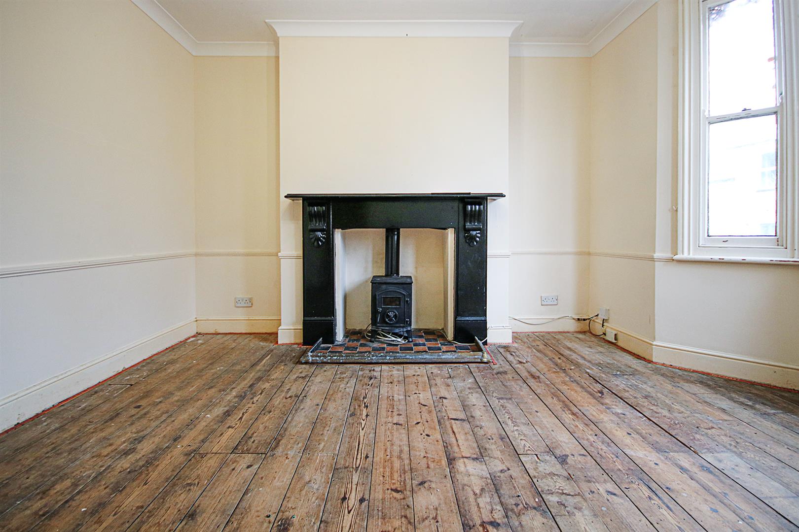 With bay window to front aspect, original feature fireplace, wood floor boards, radiator.