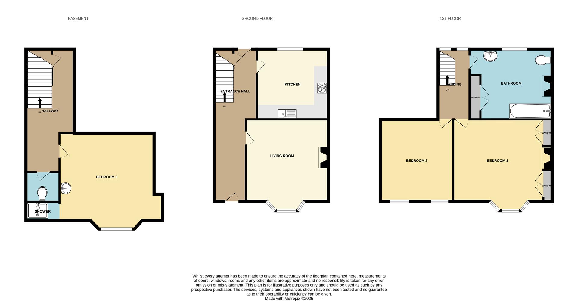 With roll top bath with shower attachment over, low level WC, pedestal hand basin, window to rear aspect, aiting cupboard.