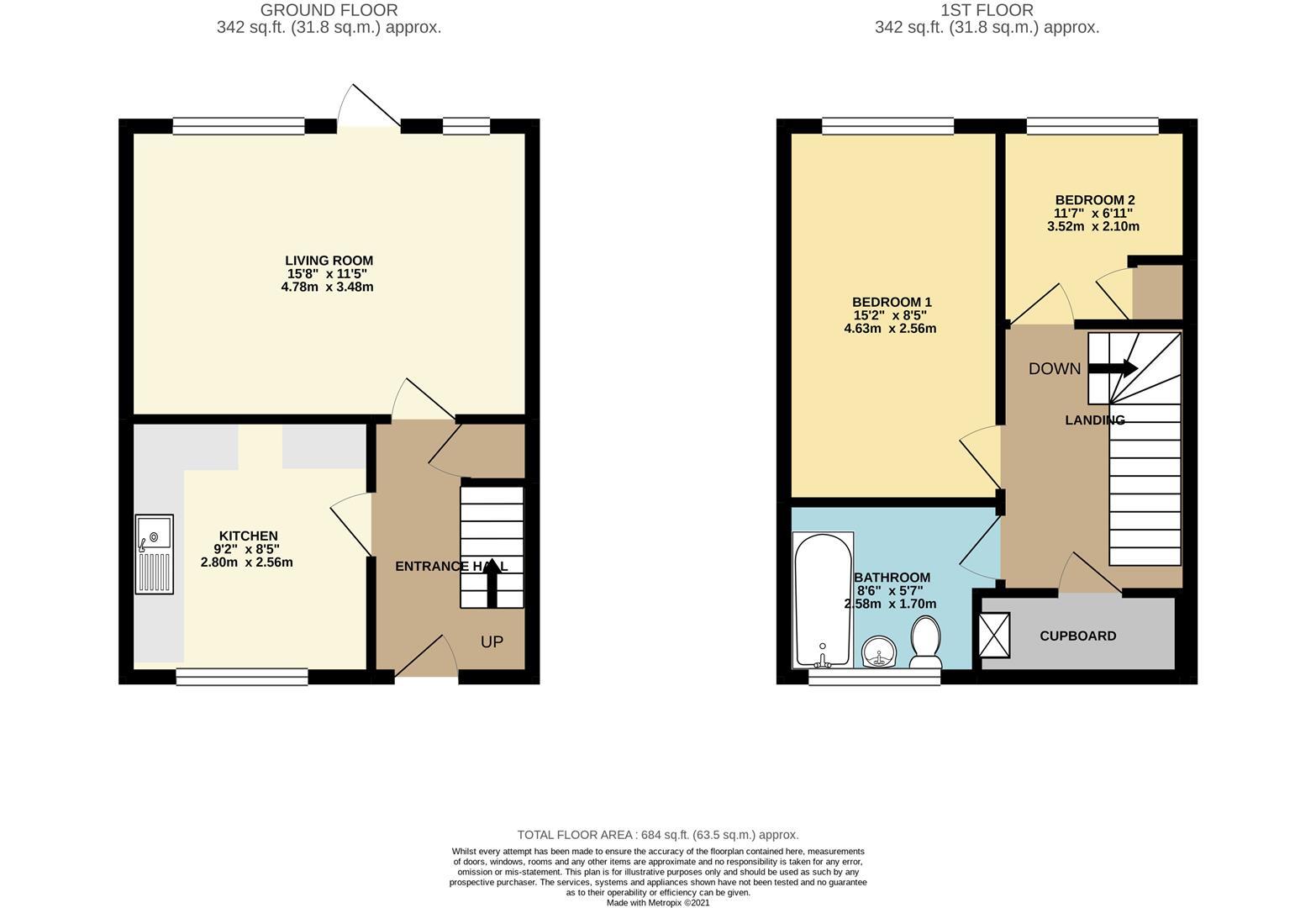 Bedroom 2 3.53m x 2.11m (11'6" x 6'11")