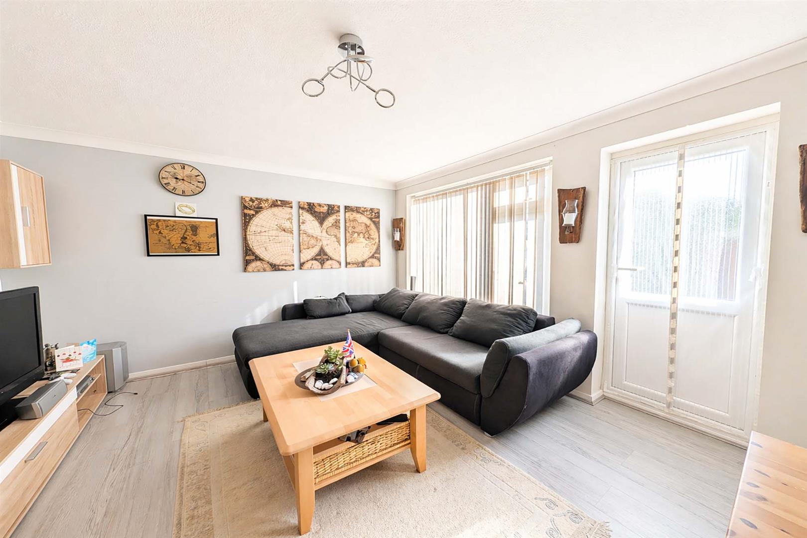 With large full height double glazed window to the rear aspect, television point, part glazed door leading through to garden.