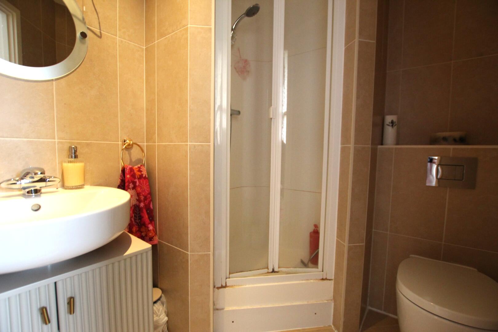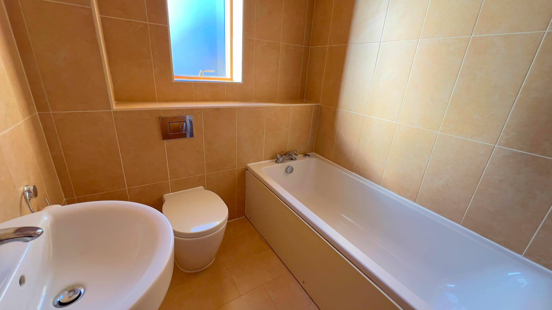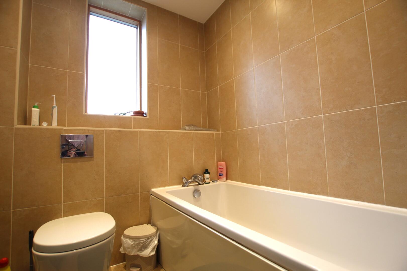 Downstairs, there is a modern kitchen equipped with white built in white goods, which opens up to a dining space within the area. There is a large, open living room which lets in plenty of natural light, with doors leading to the large, enclosed rear garden. Downstairs is serviced by a WC by the entrance.