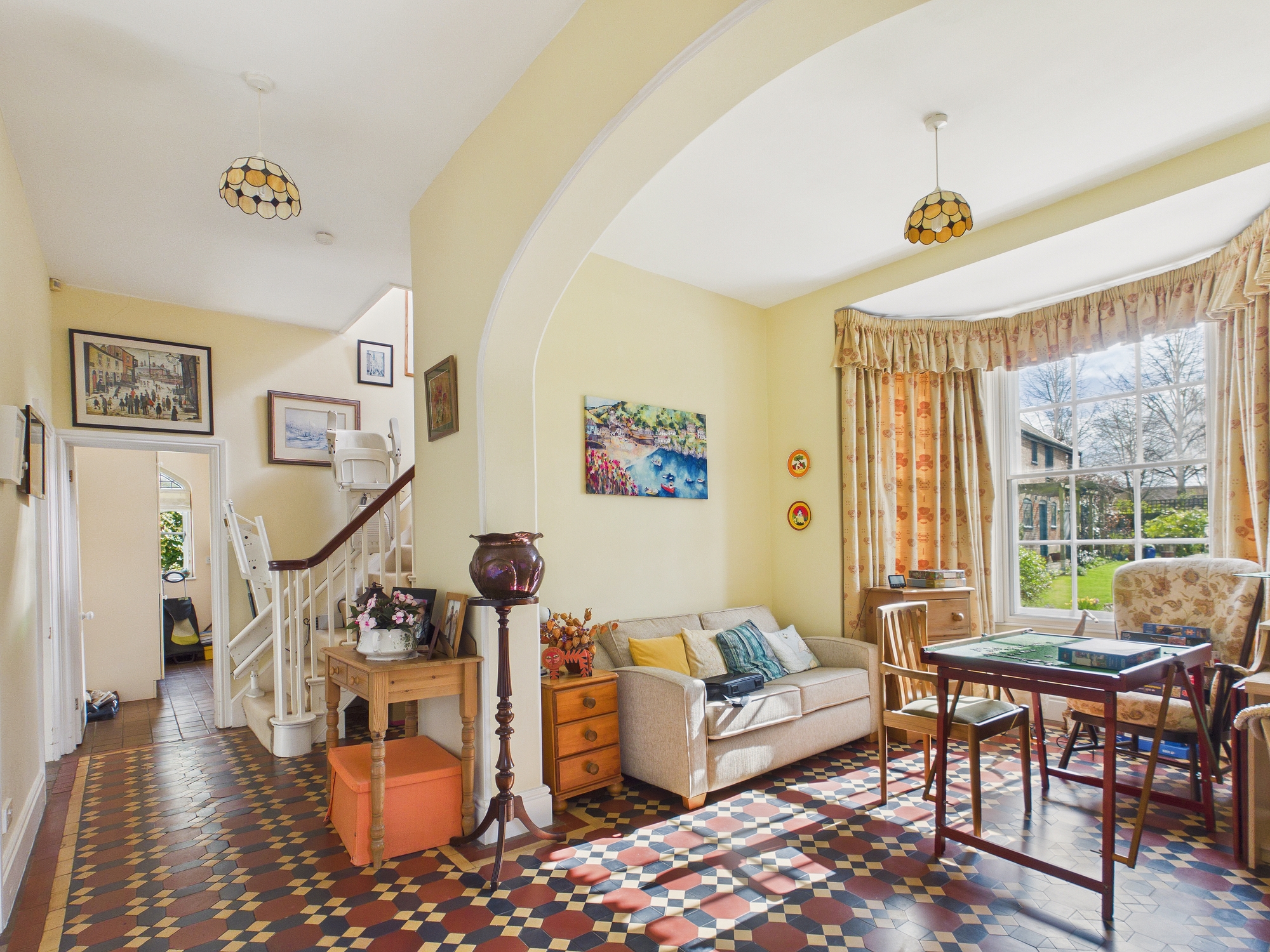 Extending throughout the downstairs boasting its original tiled flooring. An arch opens to the reception room which has a large bay window with sashes that provide beautiful views over the garden.