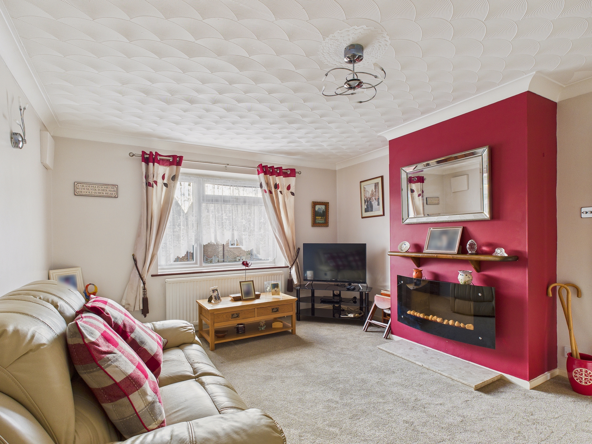 16'10" x 12'3" (5.15m x 3.74m) UPVC double glazed window to the front aspect, radiator, feature fireplace housing electric fire.