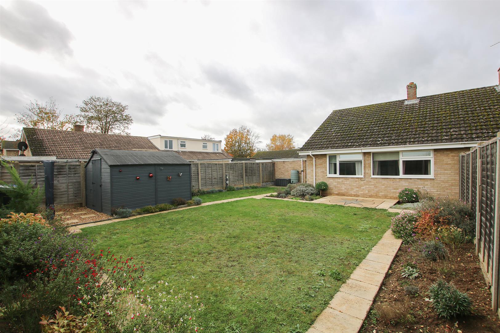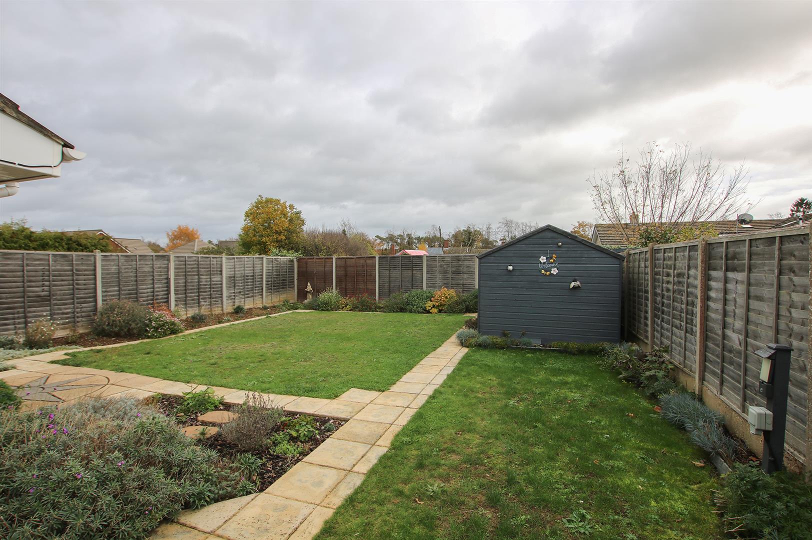 A well established rear garden with patio and grassed areas bordered by flowers and shrubberies. Garden shed.
