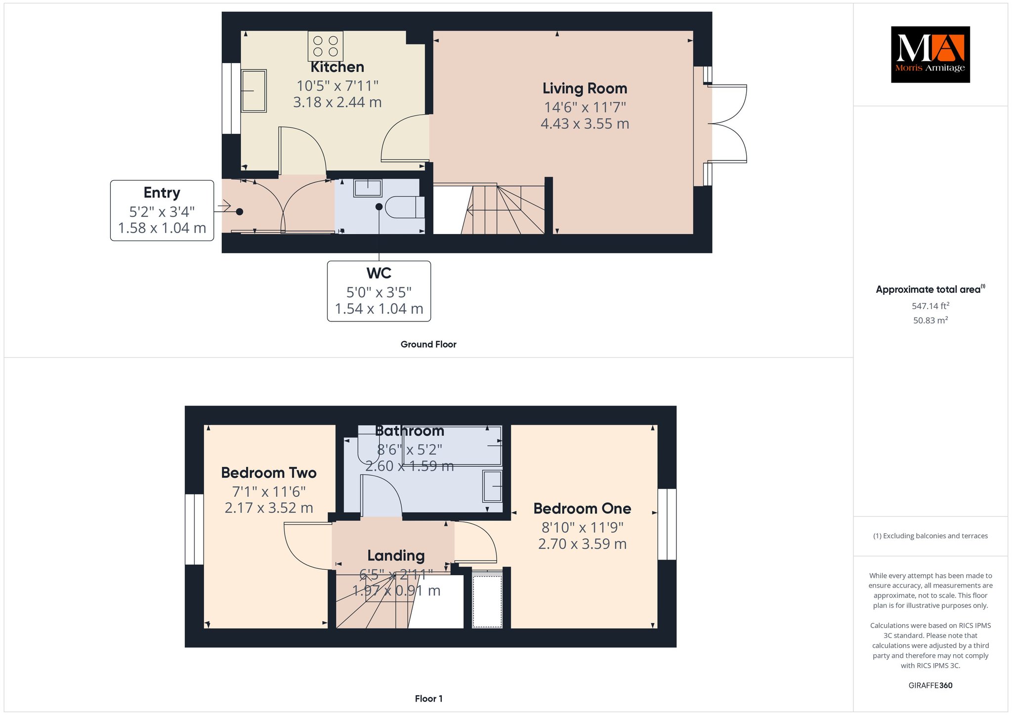 Bedroom One 11’9” x 8’10” (3.59m x 2.70m)