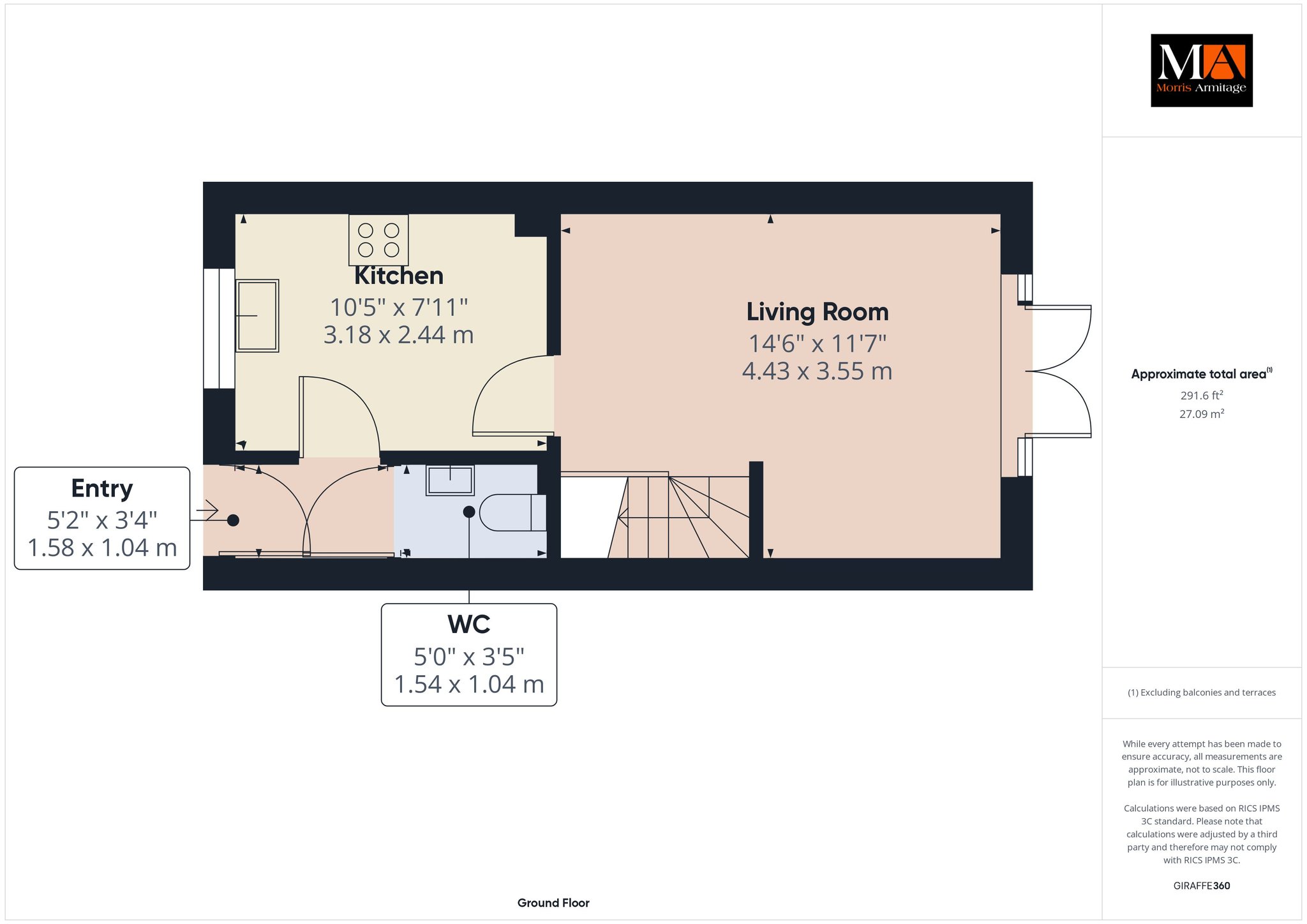 Kitchen 10’5” x 7’11” (3.18m x 2.44m)