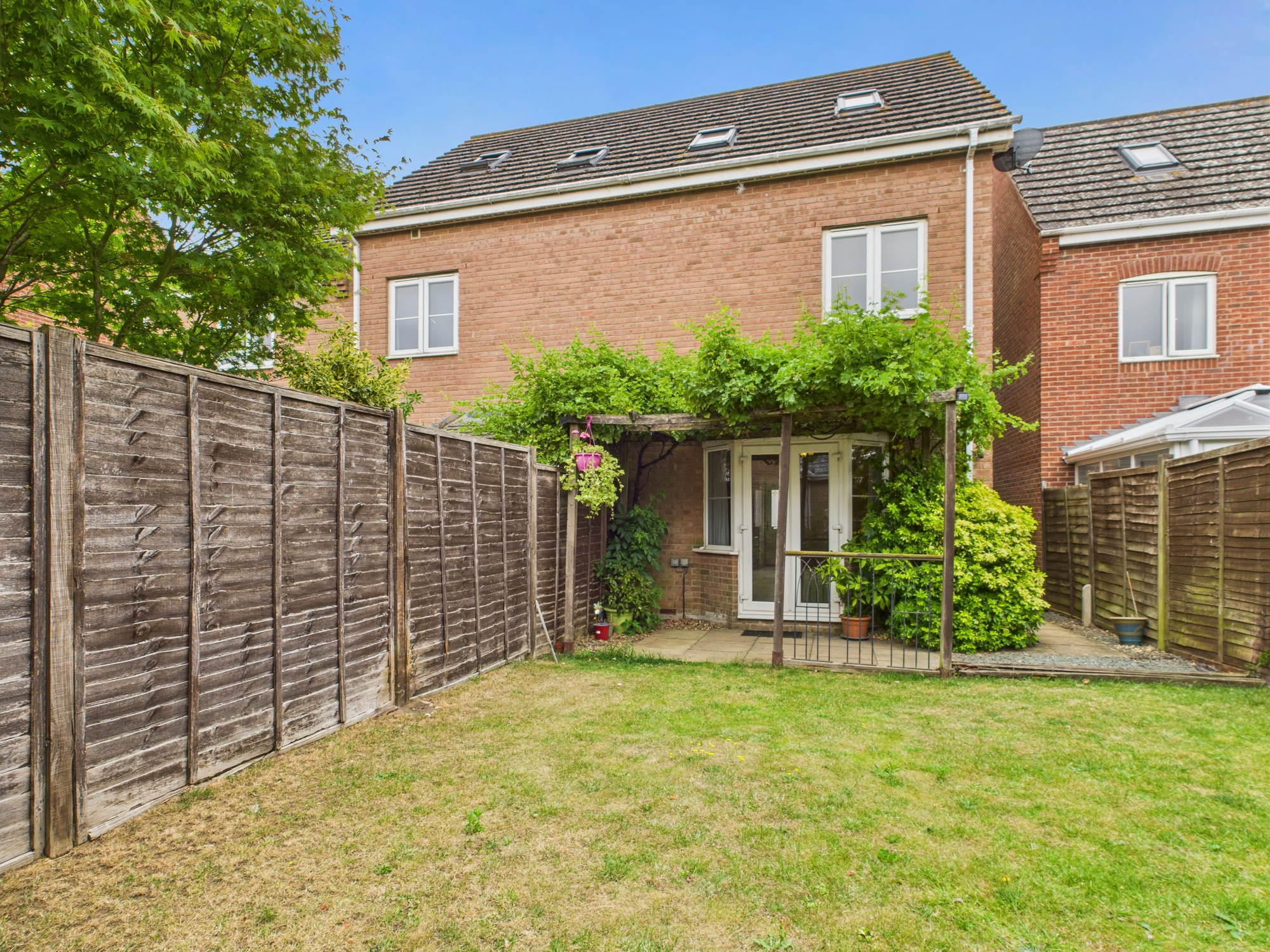 One of the most popular styles of these 3-bedroom,  3 storey townhouses enjoying a position along this established, residential development, toward the top end of town. Inside, the ground floor provides an enclosed entrance hall, separate cloakroom and a lounge that extends to over 14ft into a bay which has double opening doors opening to the rear. On the middle floor, there are 2 bedrooms, and these are served by the main bathroom whilst the whole top floor provides a large bedroom which benefits from an en-suite shower room. Outside, there is private access leading to the side opening directly to the enclosed garden that provides a high level of privacy along with lawn and a  vine covered patio. A further side access, leading around to the rear,  leads through to the driveway and garage. A further advantage is that the property is being sold with the advantage of having no onward chain.