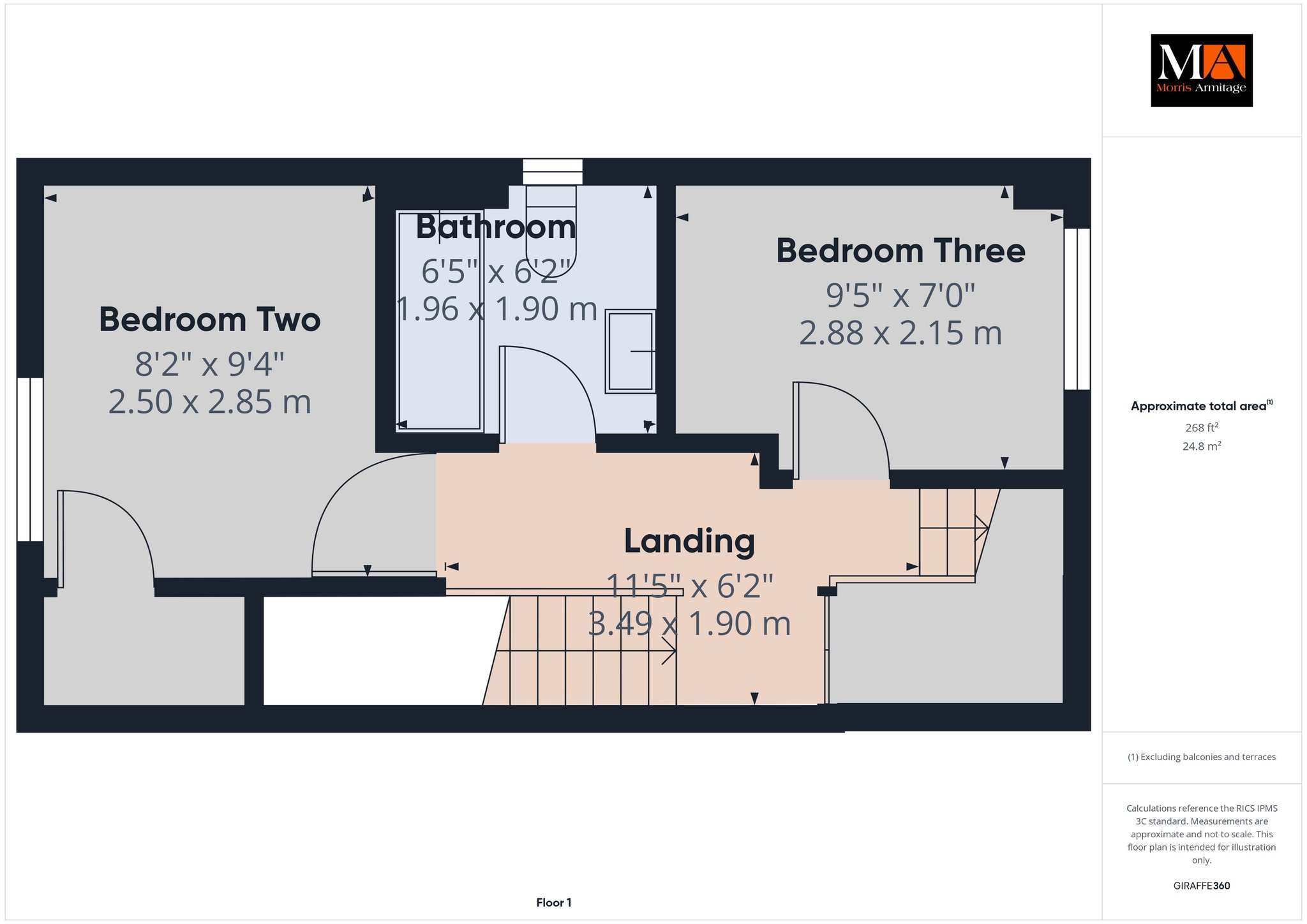 Bedroom Two 9’4” x 8’2” (2.85m x 2.50m)