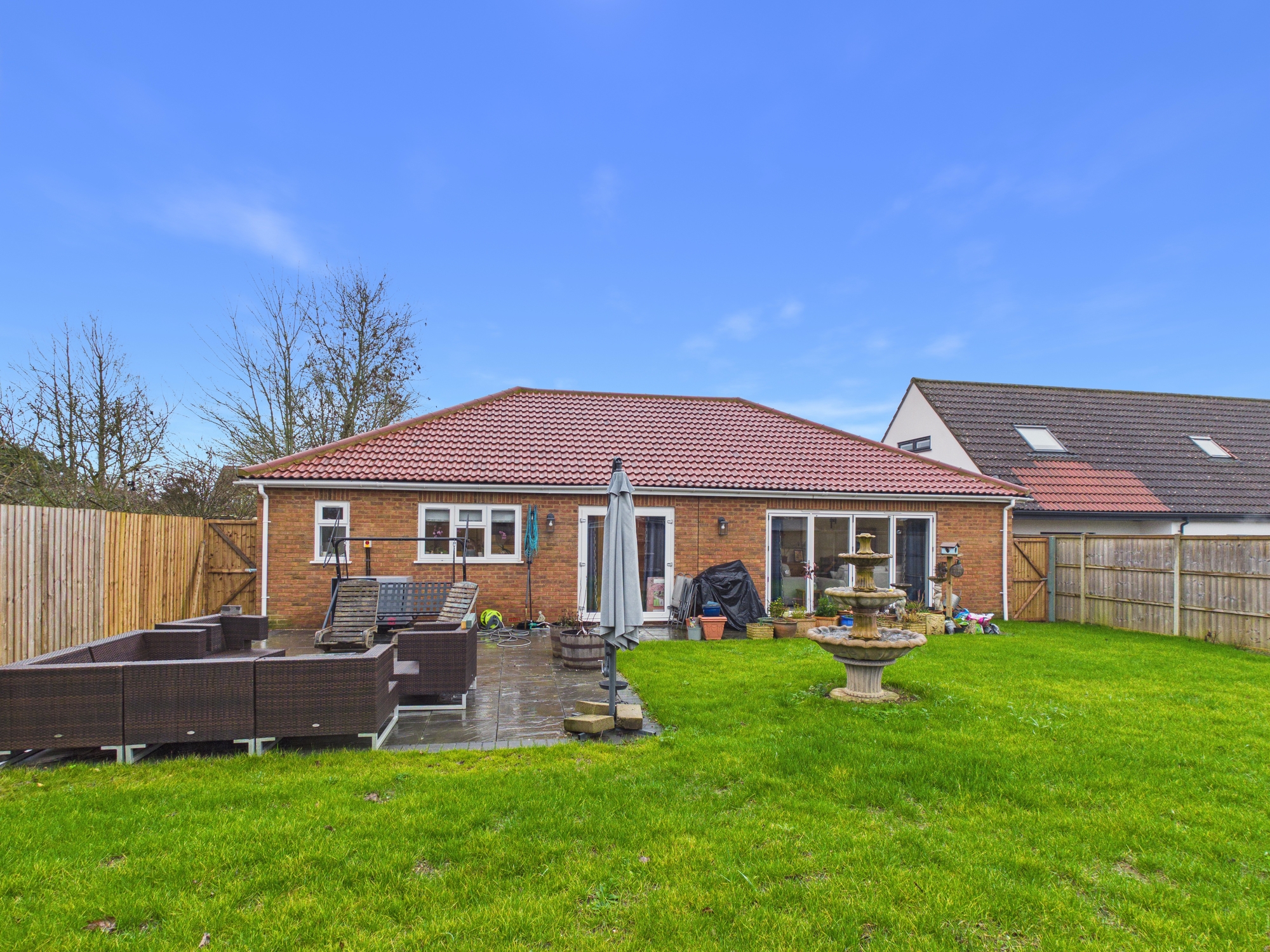 Positioned within this popular area of Downham Market is this newly built, well designed property. The accommodation spans over almost 200 sqm and starts with a spacious, inviting entrance lobby which is central to the bungalow. The lounge is to the rear with folding doors to the garden and double doors through to the modern kitchen with integral appliances and centre island all finished with quartz worksurfaces. There is also a separate utility room with matching finish. The four bedrooms are all double in size and come with the benefits of all having en-suites and three have walk-in wardrobes. The cloakroom completes the internal layout. The property enjoys air source under floor heating throughout. Externally metal gates lead through to the private shingle driveway providing off road parking and leads to the double garage. The rear garden is mainly laid to lawn with a patio inset, enclosed by fencing. Located with good access to the towns amenities and also the train station on the King’s Lynn to London King’s Cross line via Cambridge.