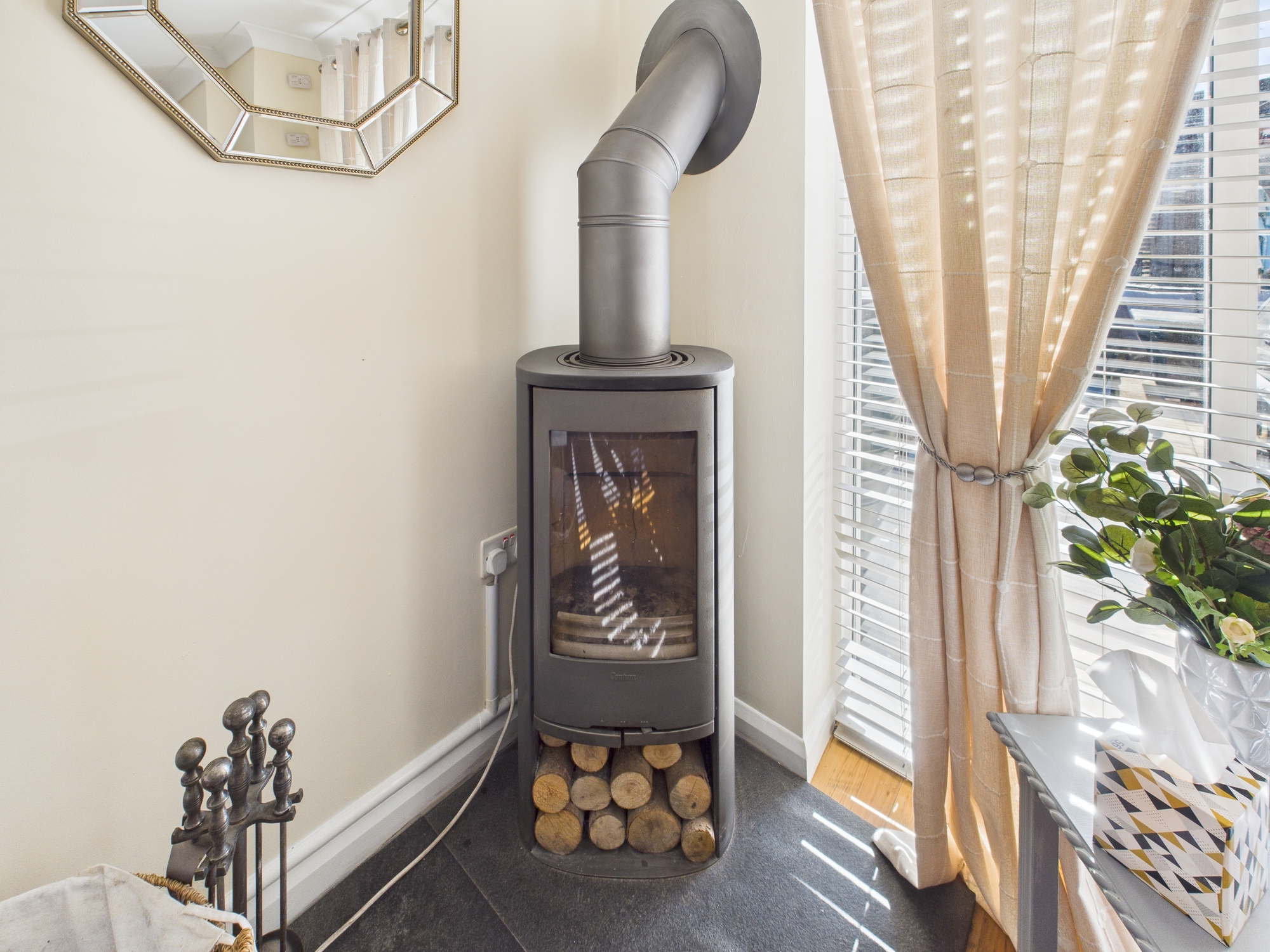 Log burner, wall mounted radiator, uPVC double glazed window to front, patio door to rear.