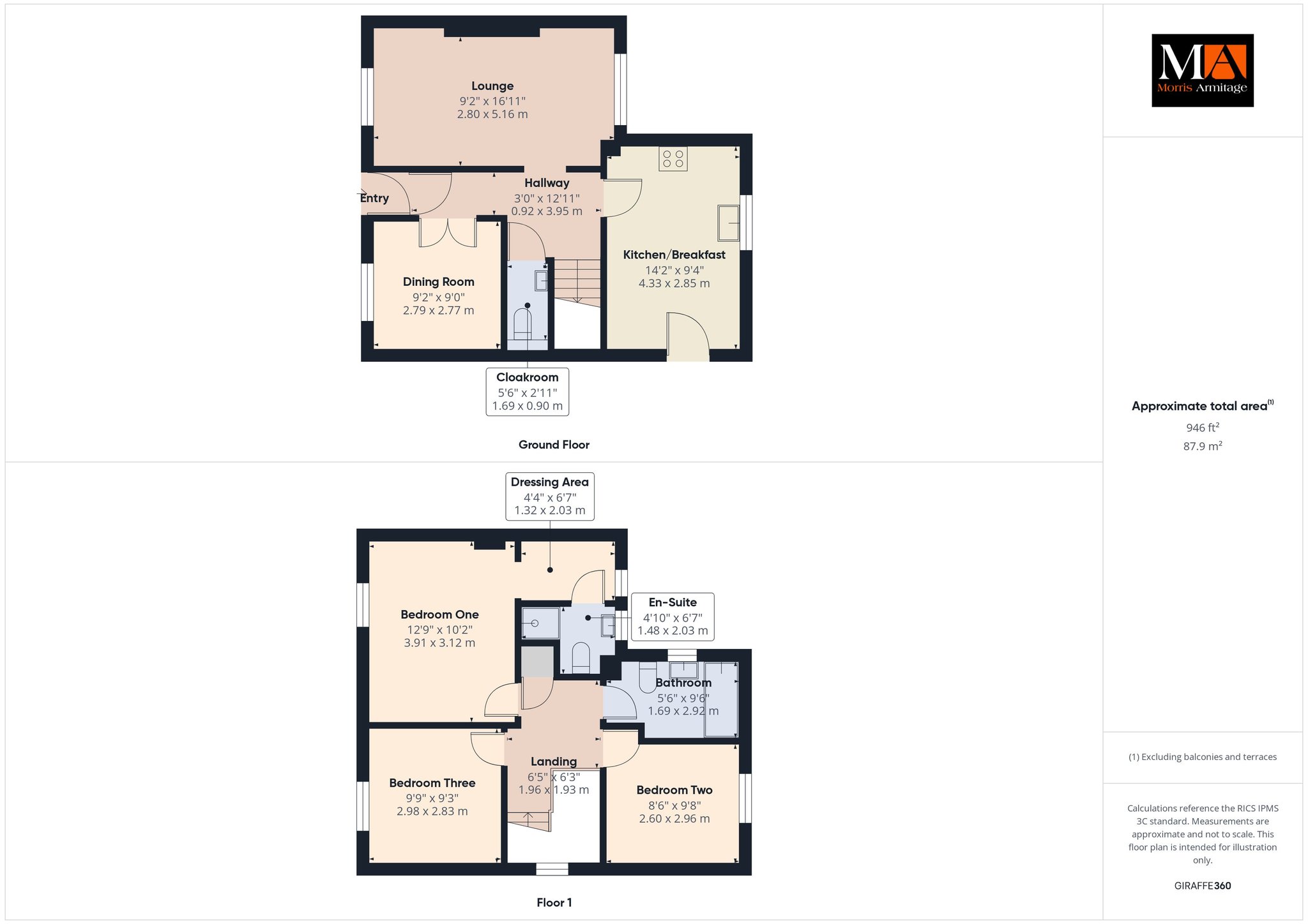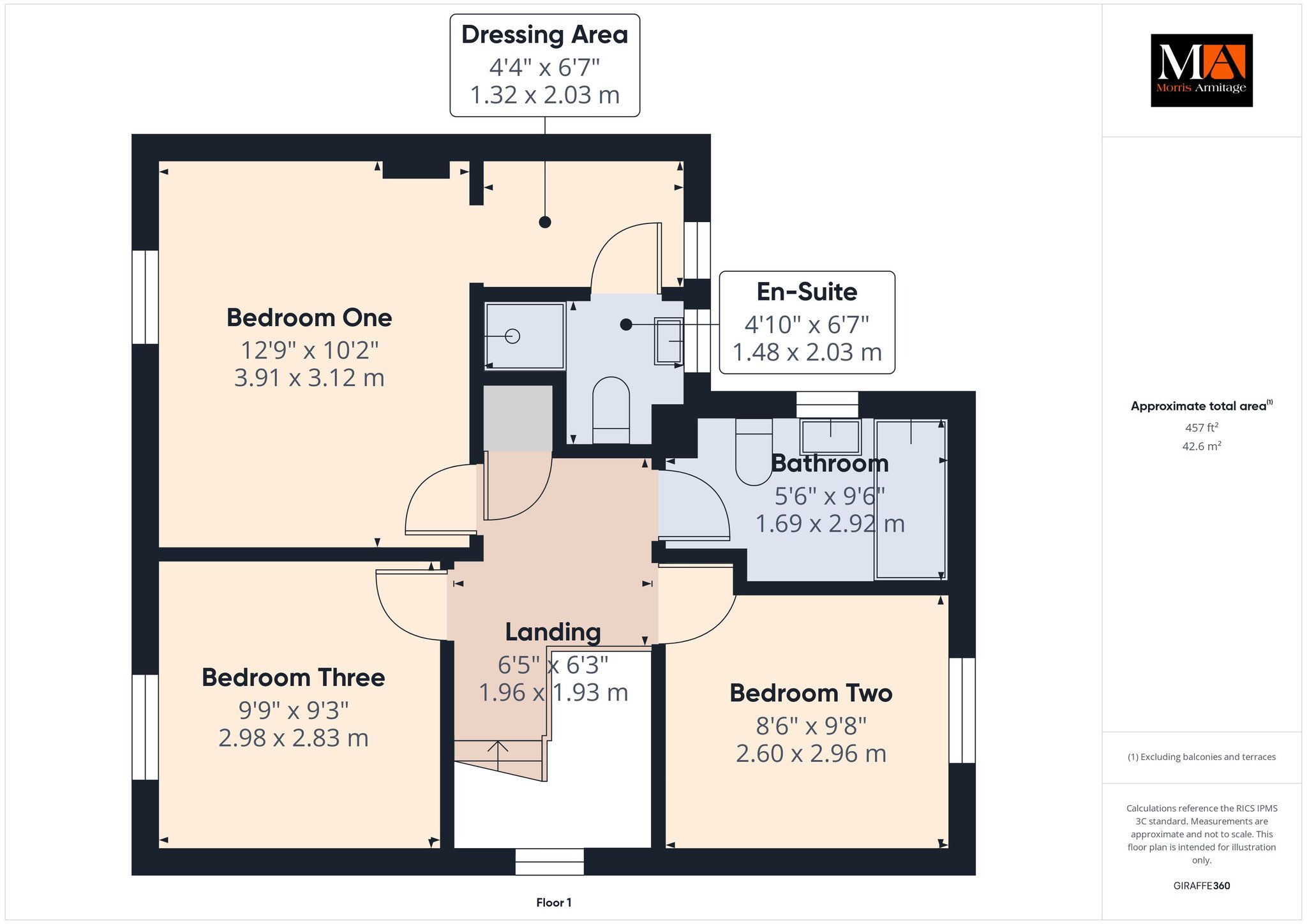 Dressing Area 6’7” x 4’4” (2.03m x 1.32m)