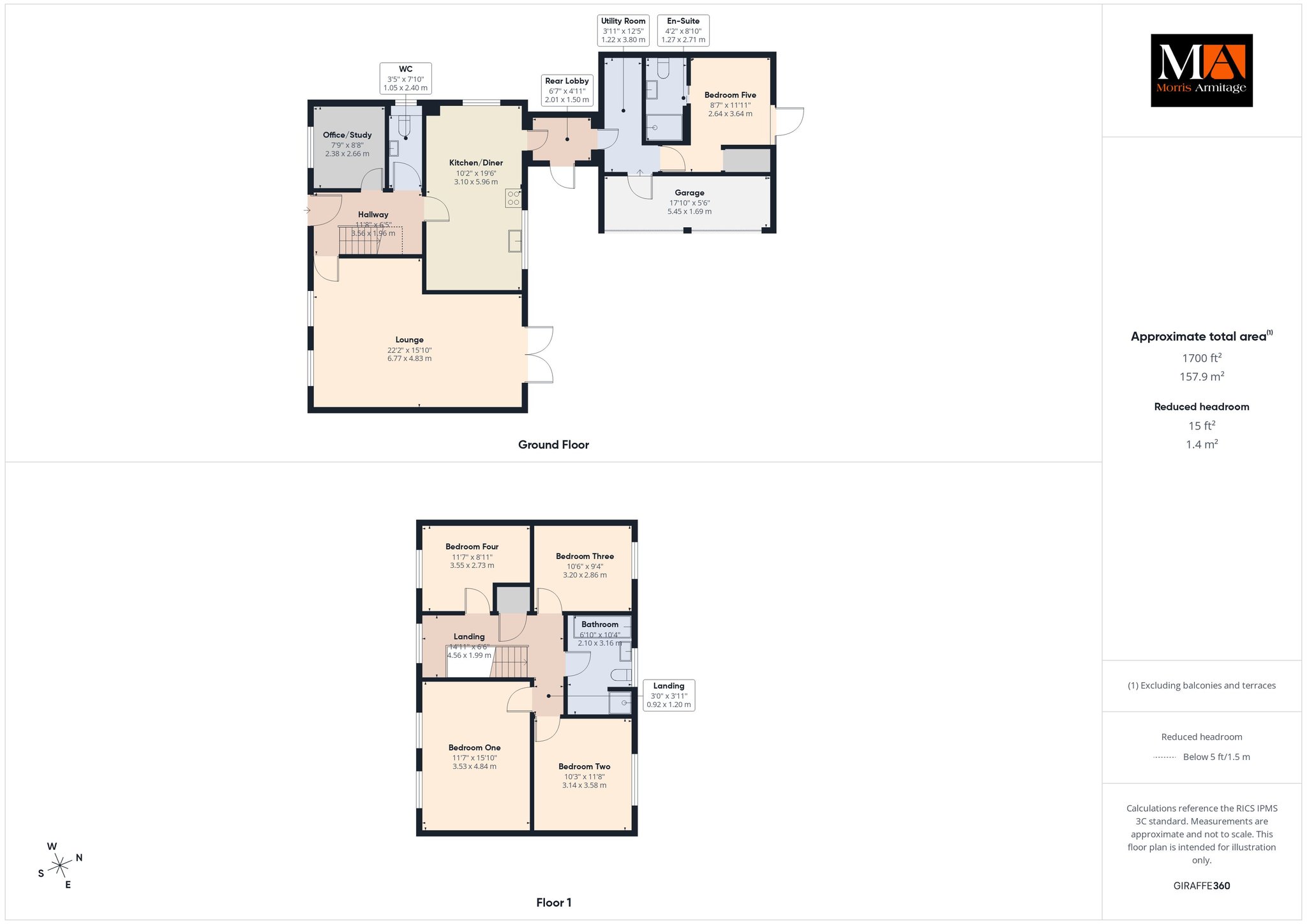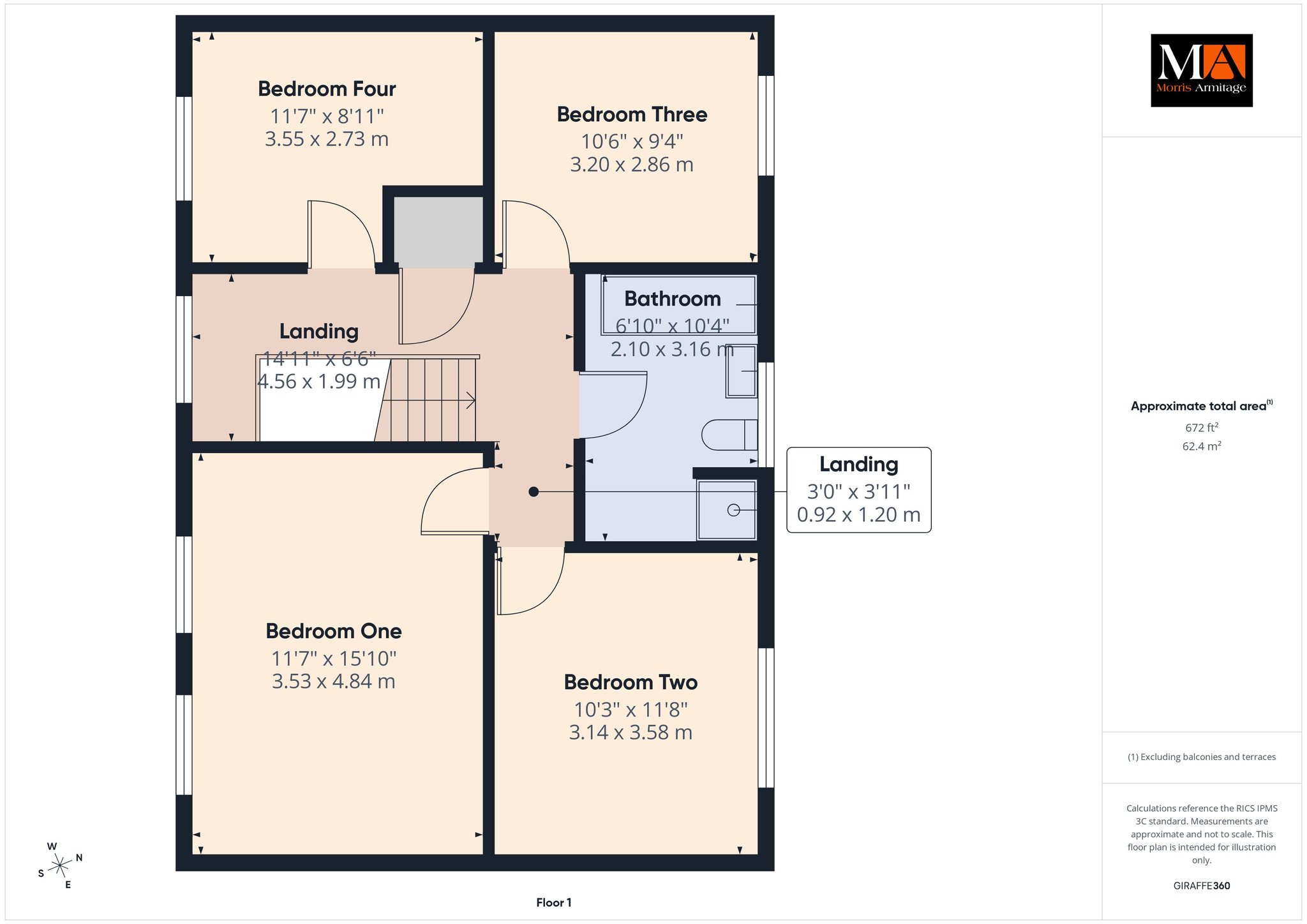 Bedroom One 15’10” x 11’7” (4.84m x 3.53m)