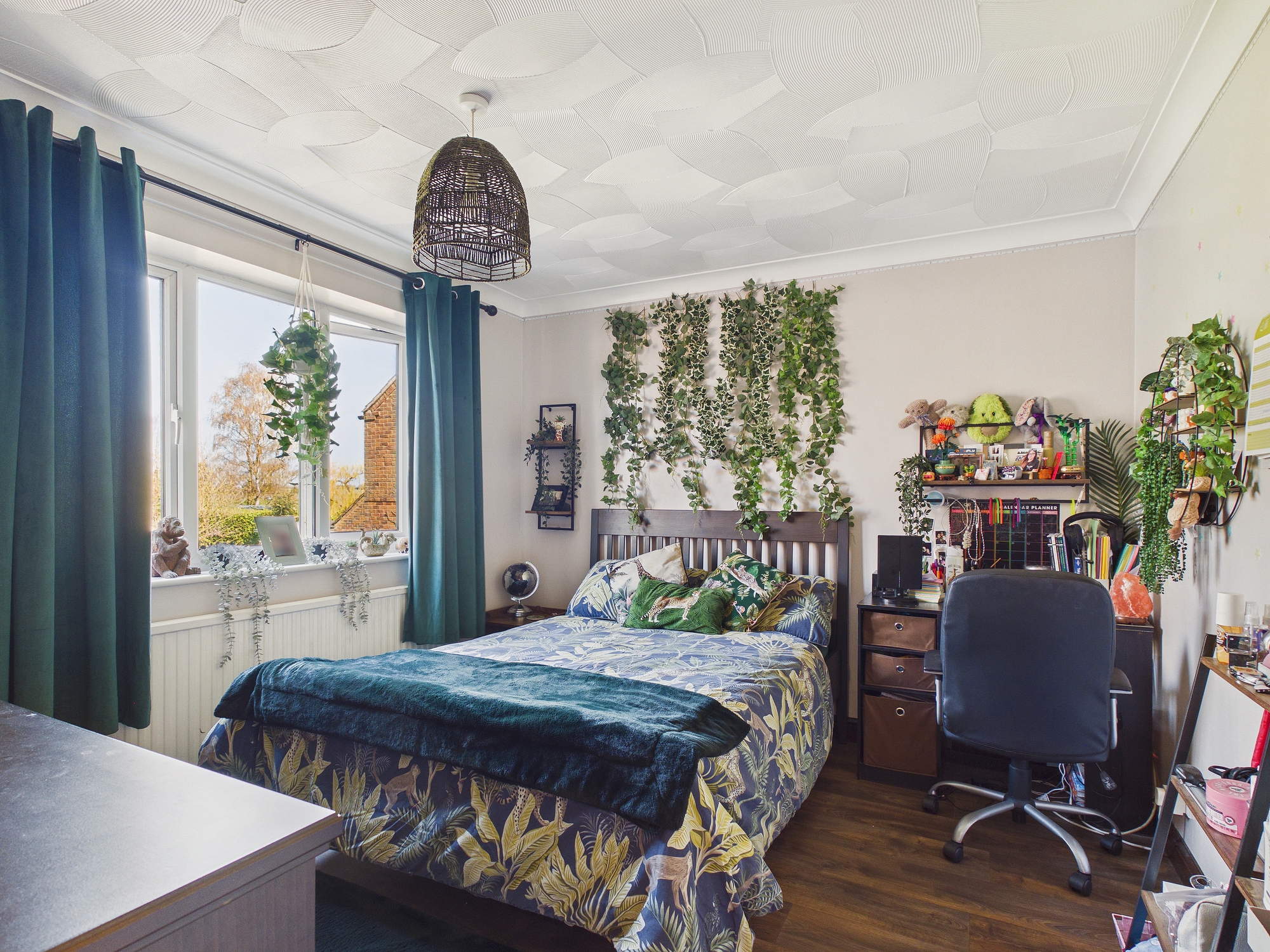uPVC double glazed window to front, wall mounted single panel radiator, textured and coved ceiling with ceiling fan.