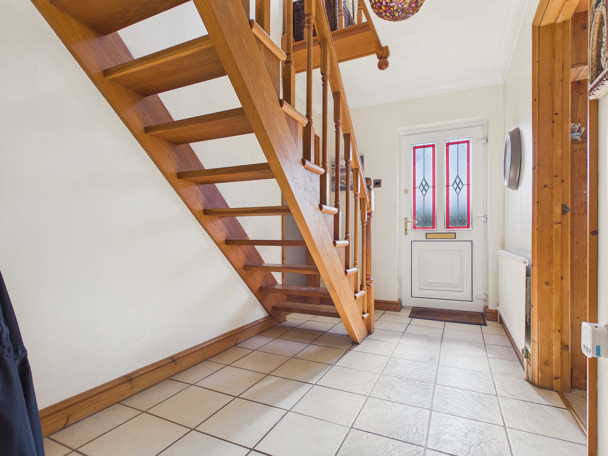Stairs to first floor, wall mounted single panel radiator, tiled flooring, doors to all rooms.