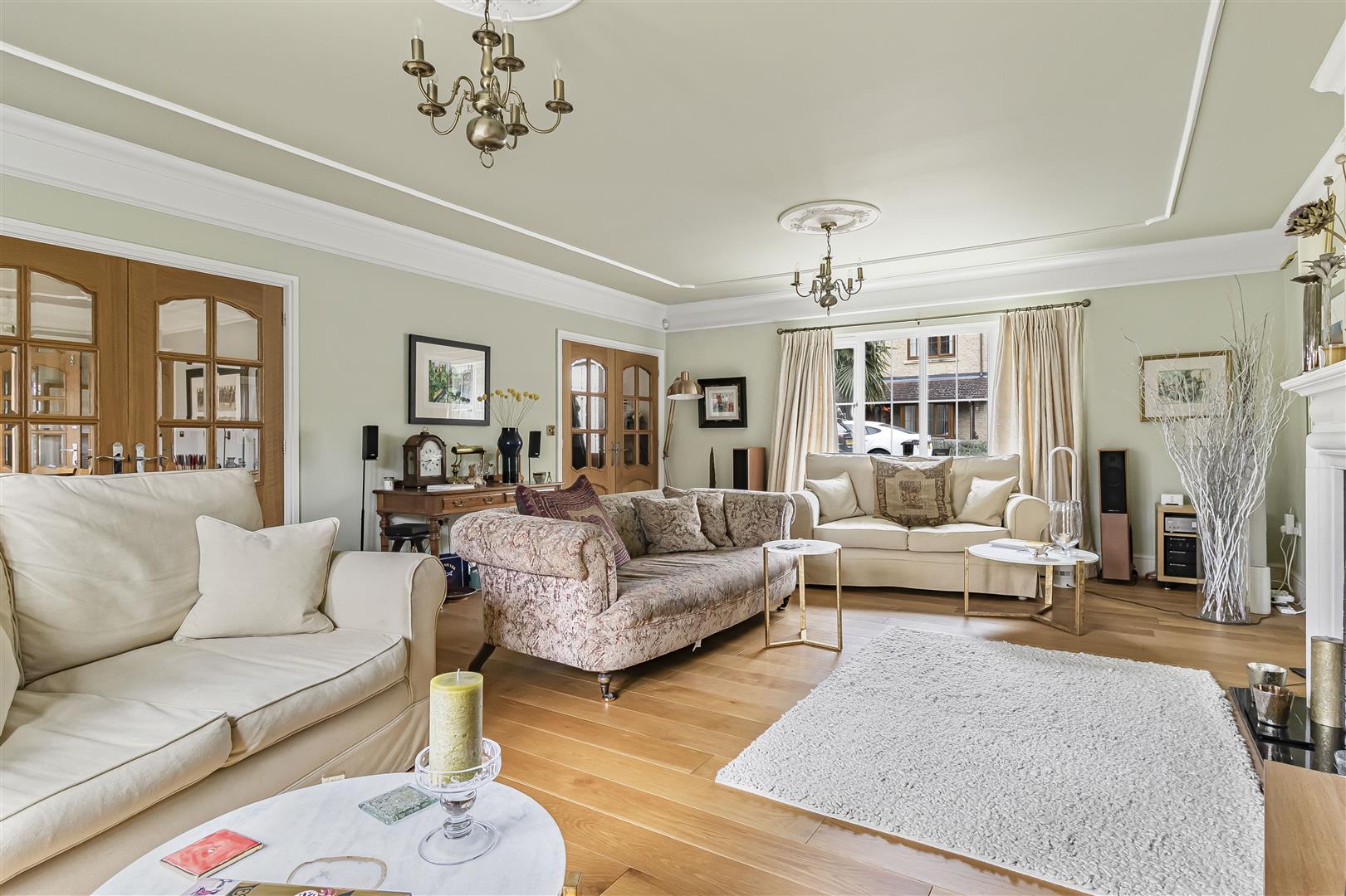 A generous sized double aspect living room. Feature fireplace with marble surround, hearth and mantel currently fitted with a gas fire. Radiator. Window to front aspect, Internal French doors leading to dining room and French doors leading to rear garden.
