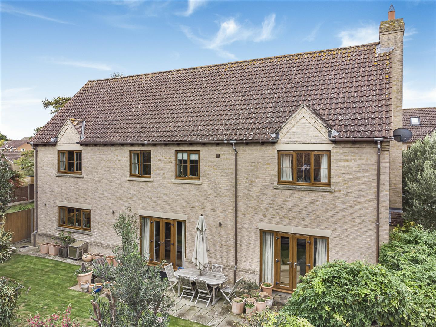 Fully enclosed rear garden with patio and grassed areas bordered by mature tress and shrubberies. Gated access to garage and front of property.