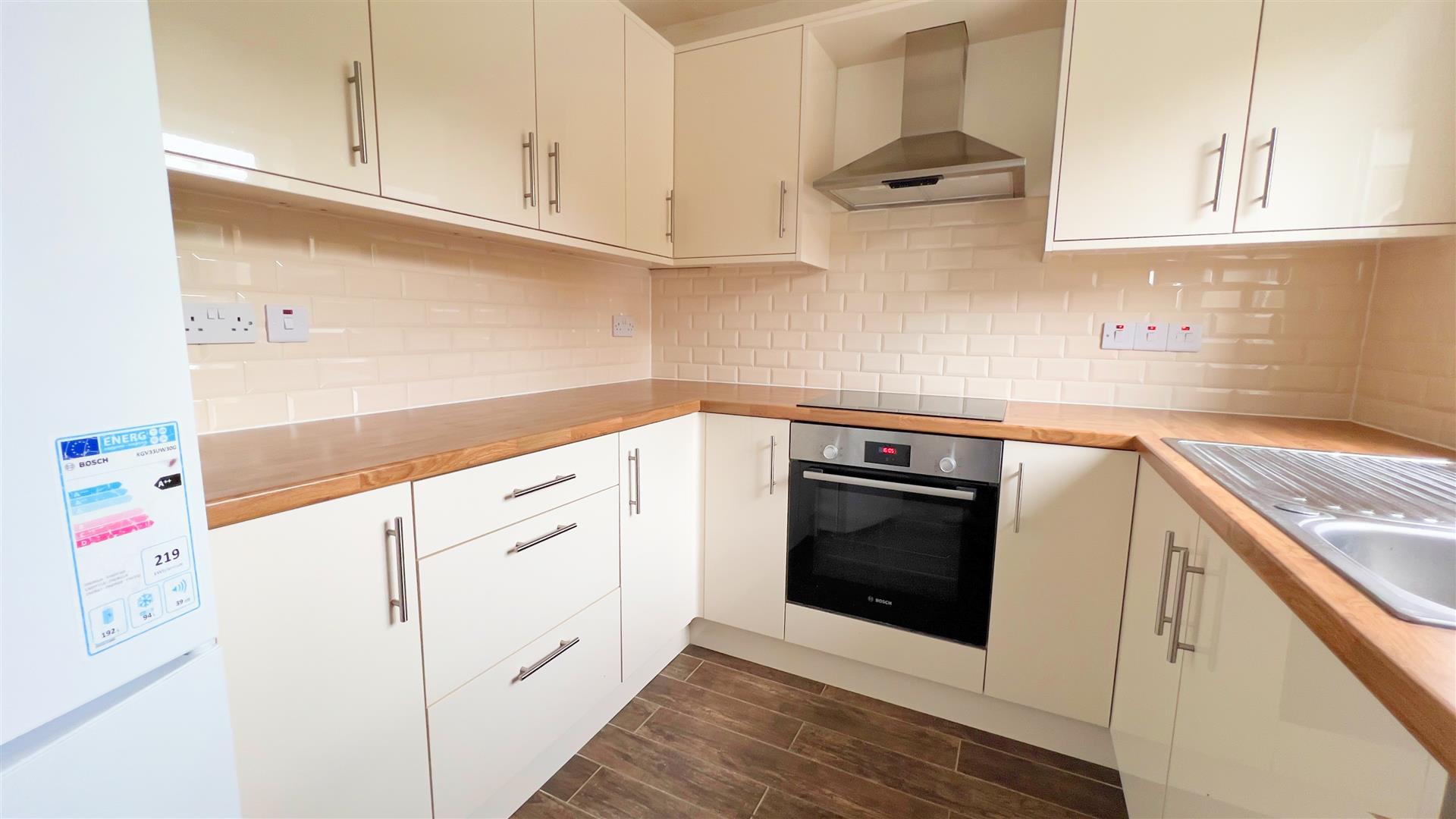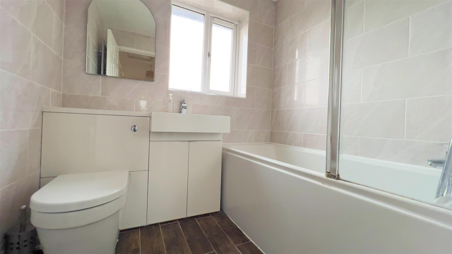 The accommodation features a wide, open living room with plenty of natural light, a well-equipped kitchen, and three good-sized bedrooms served by a modern family bathroom. To the rear, the property has a large enclosed garden, the front and rear lawns will be maintained directly by the landlord at no extra cost.