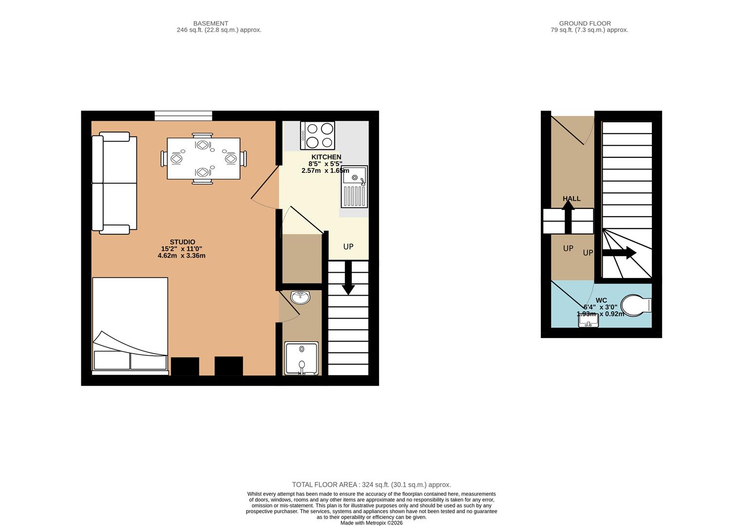 Studio 4.62m x 3.36m (15'1" x 11'0")