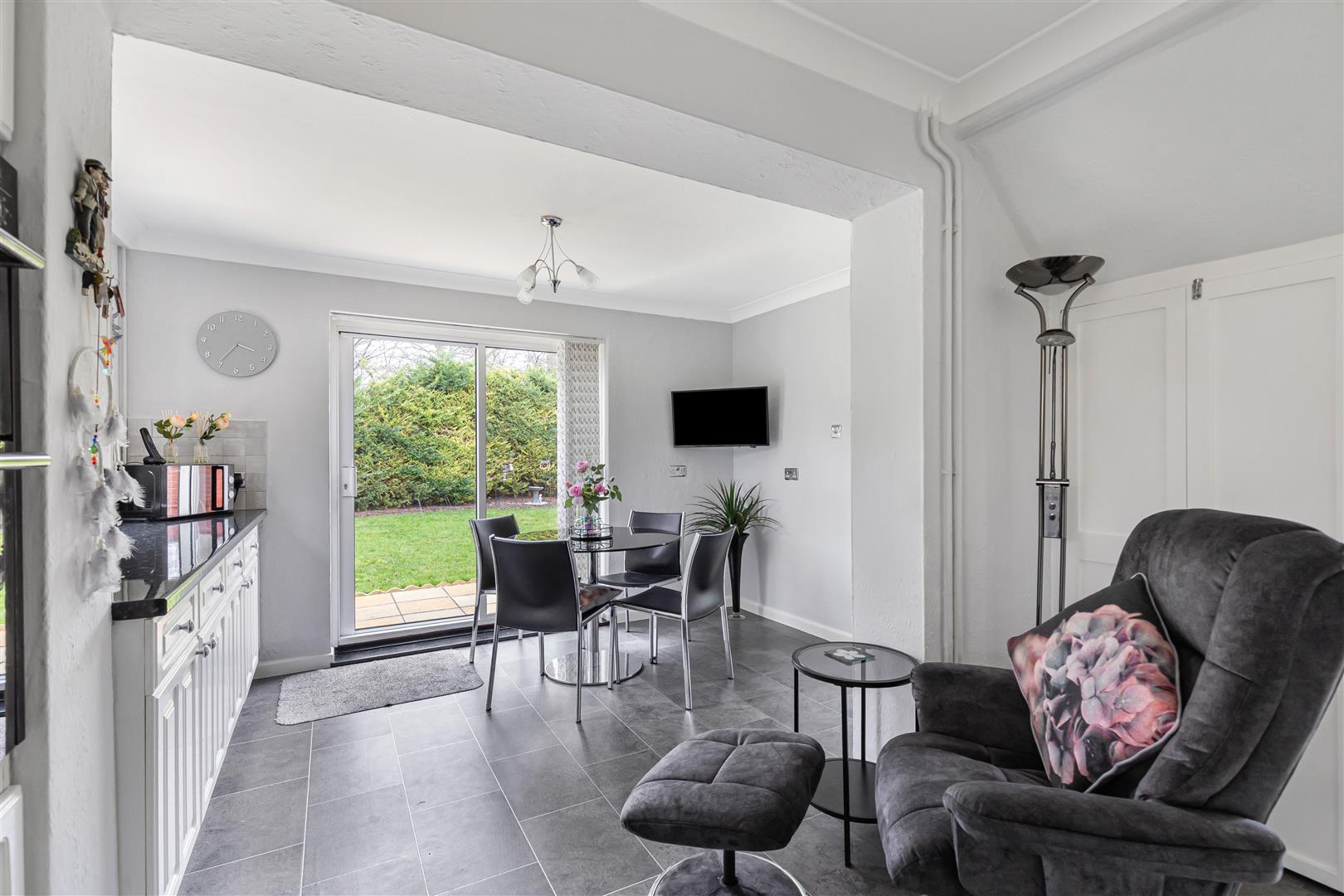 Charming room with large window to the rear aspect. Sliding glazed doors to the rear garden. Radiator. Opening to the living room.