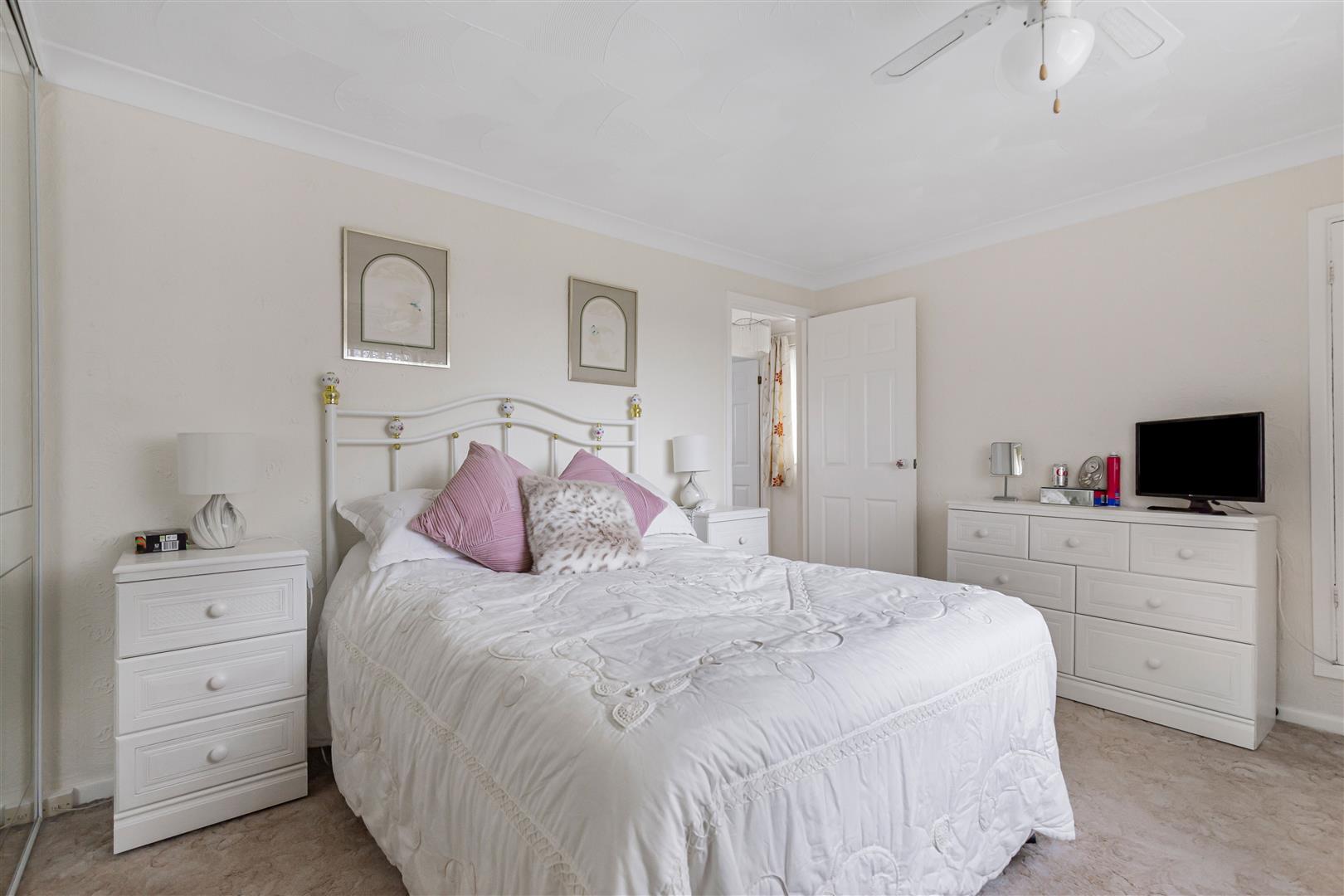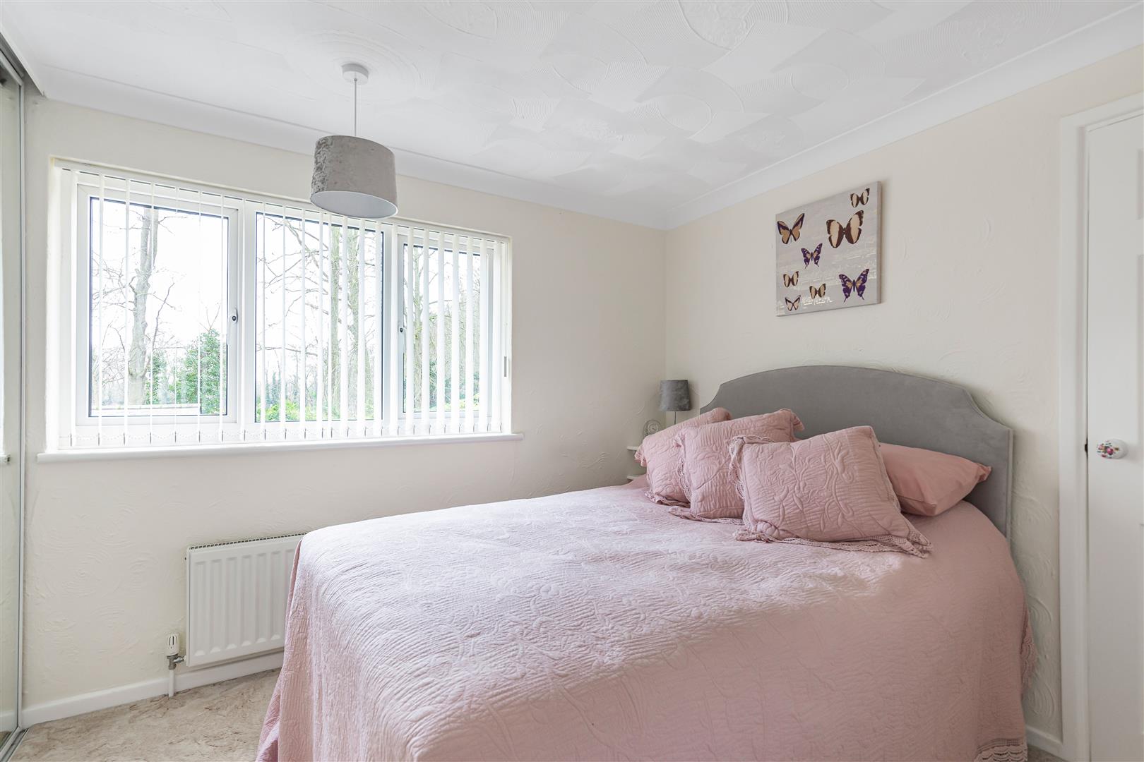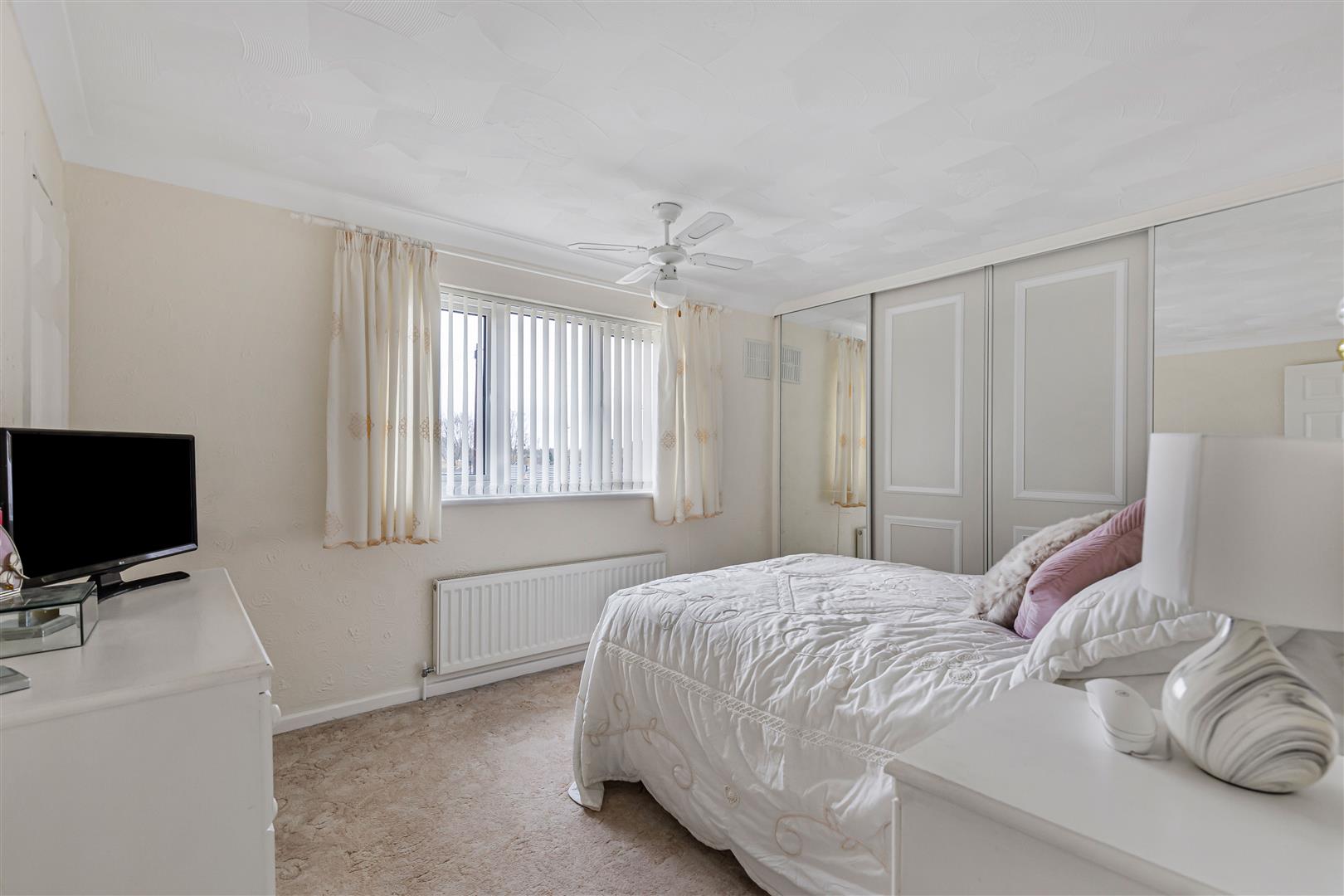 Spacious double bedroom with built-in wardrobes with sliding doors. Further storage cupboard. Radiator. Window to the front aspect. Door leading to the landing.