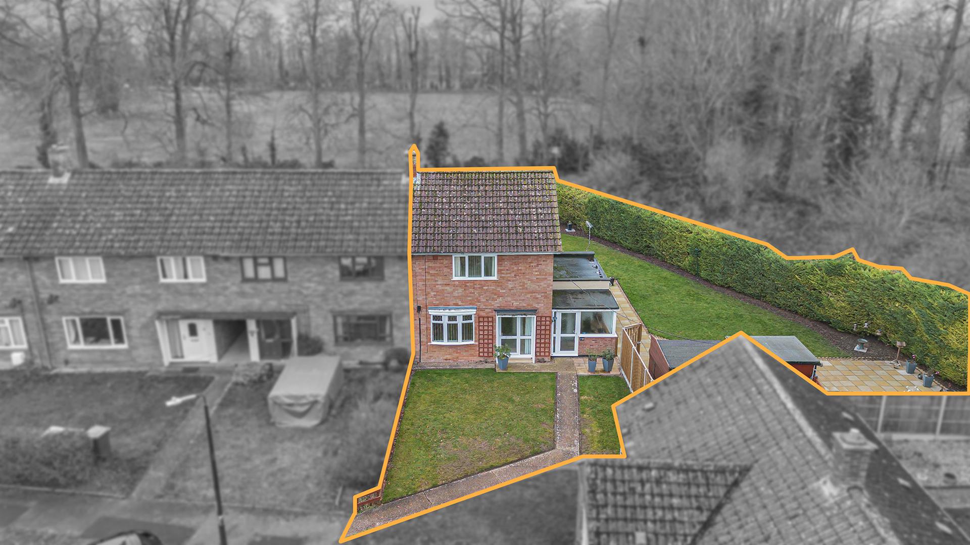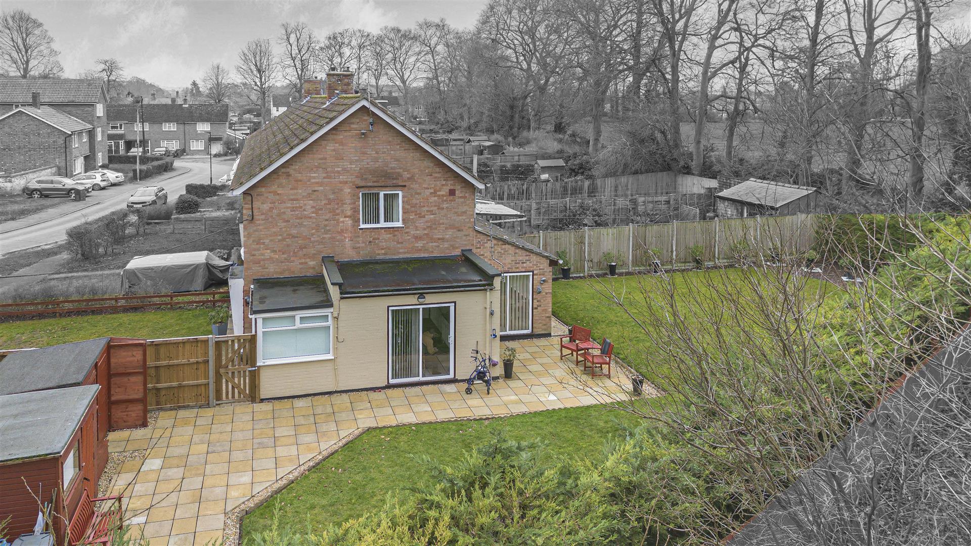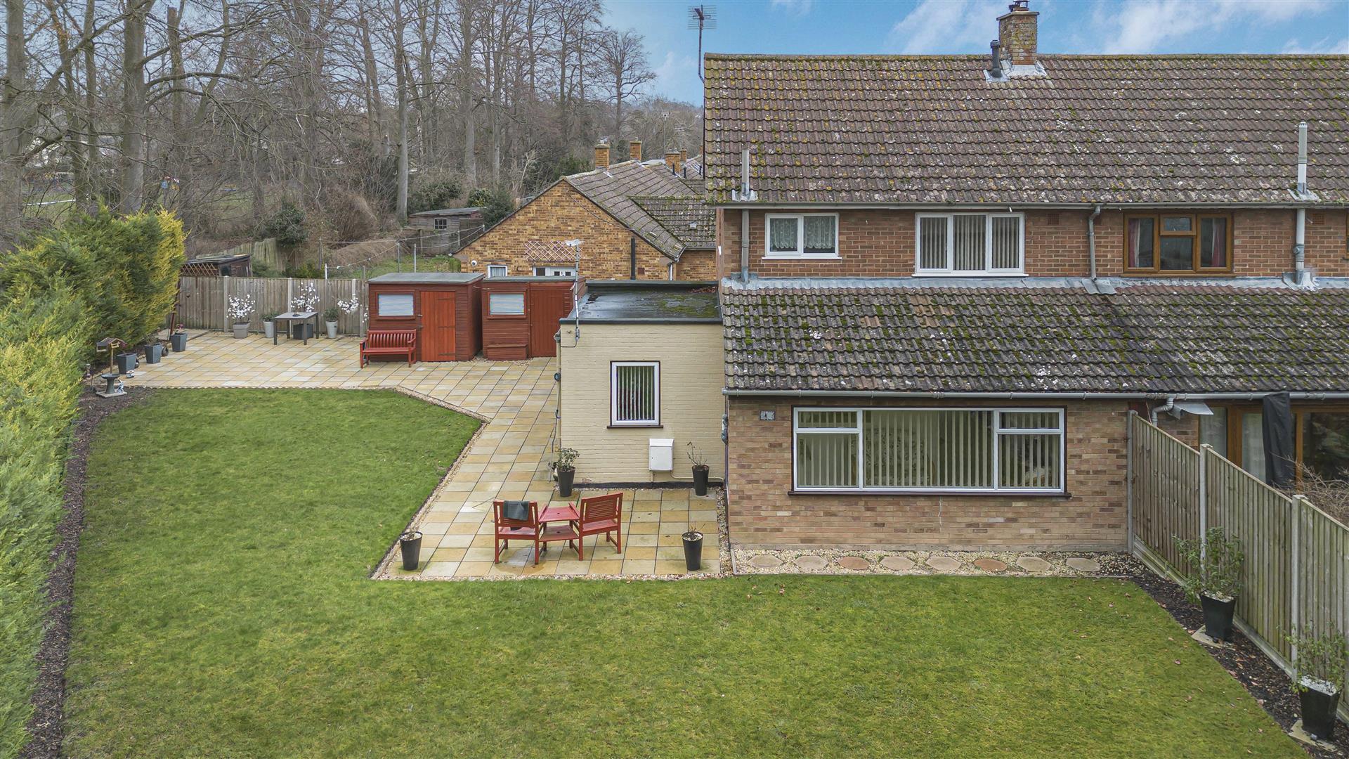 Externally, a well maintained rear garden with woodland beyond. Generous patio area.
