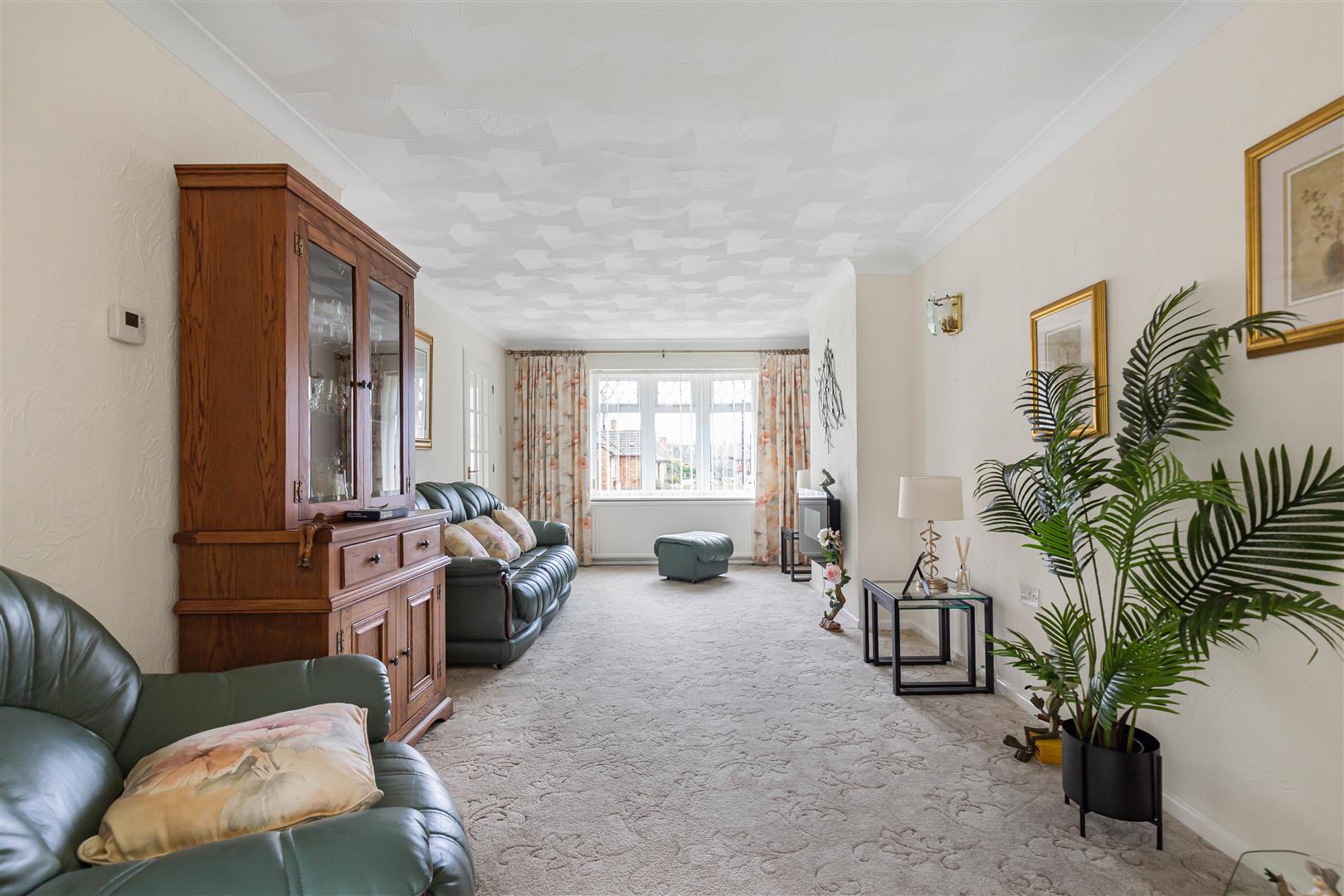 Generous living room with contemporary inset wall mounted feature fireplace. Radiator. Large bay window to the front aspect. Opening to the sun room. Glazed door to the entrance hall.