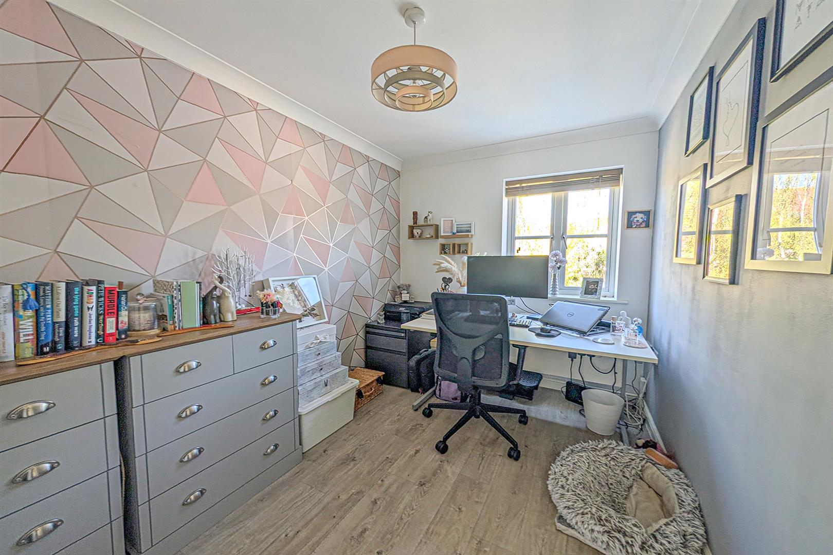 Well proportioned bedroom with window to the rear aspect. LVT wood flooring. Radiator. Door leading to the landing.