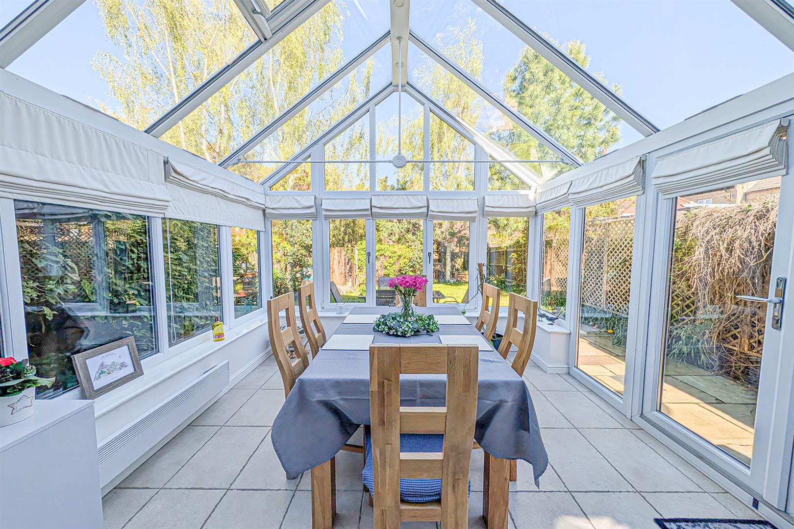 Stunning Victorian style conservatory, currently used as a dining room. Tiled flooring. French doors leading to the rear garden. Bi-fold doors leading to the living room.
