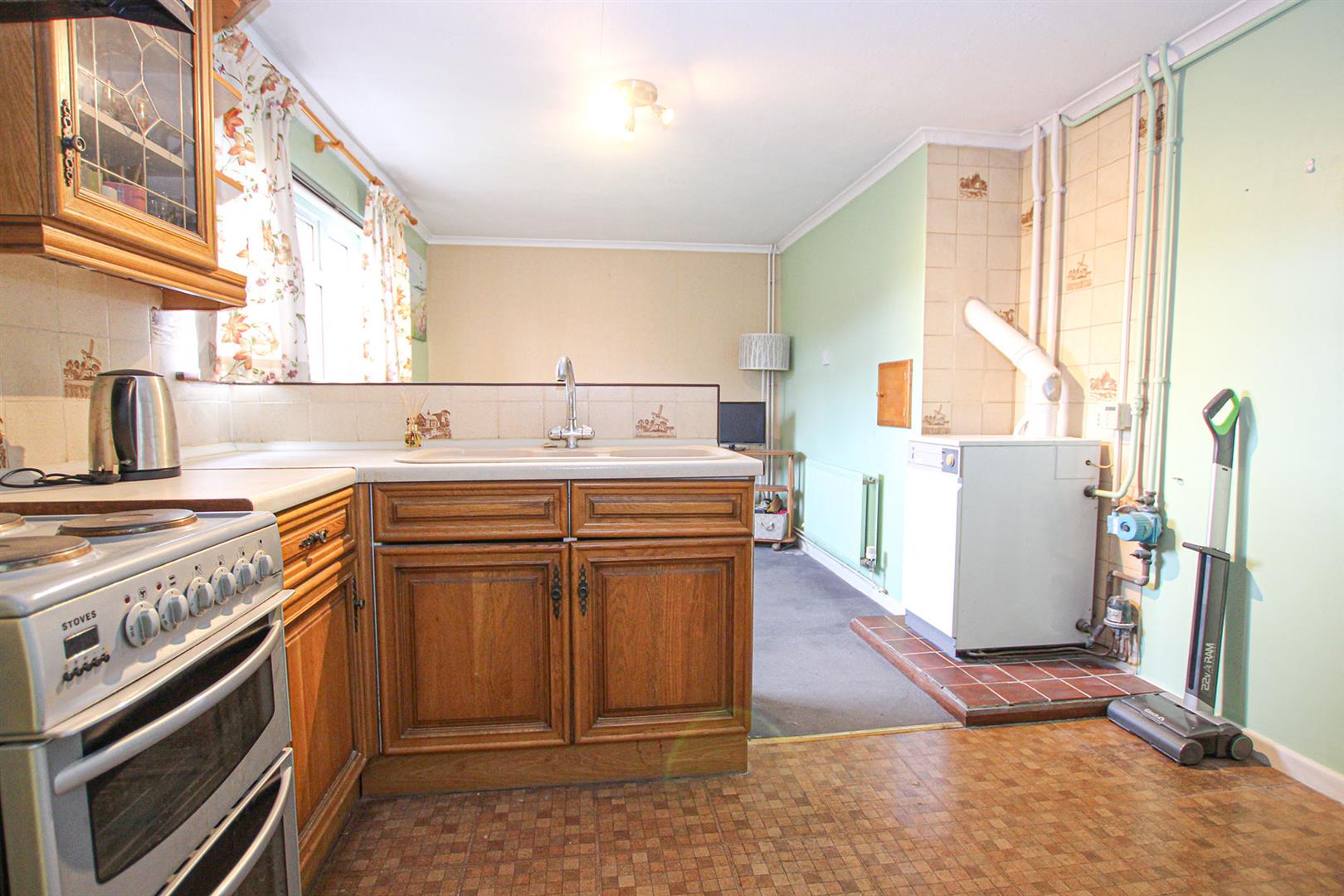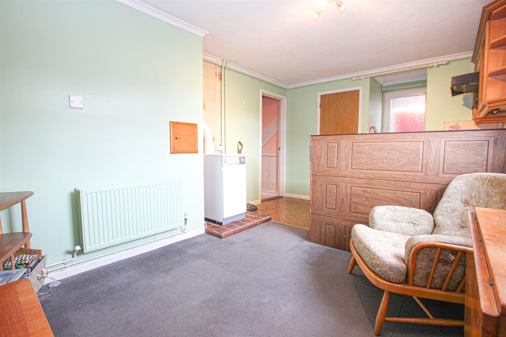 Spacious kitchen/dining room with window overlooking rear aspect. Kitchen: range of eye and base level cupboards with worktop over. Sink and drainer with mixer tap over. Space and connection for electric cooker with extractor over. Tile effect vinyl flooring to kitchen area. Doors to rear garden and entrance hall.