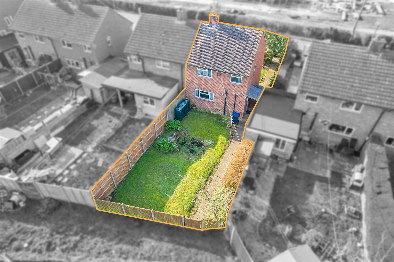 Enclosed rear garden with pathway leading to rear access gate. Mainly laid to lawn with some mature shrub planting. Brick built shed.