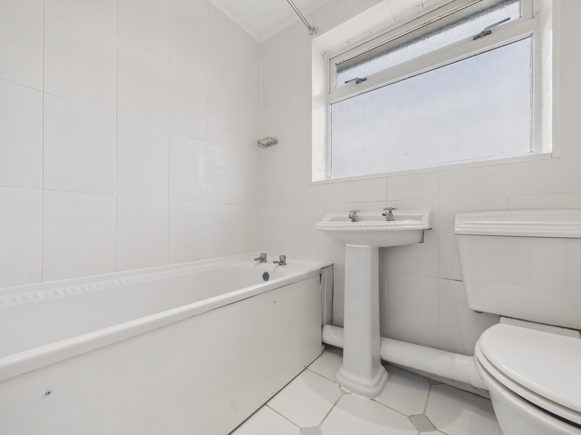 Bath with electric shower over, low level w.c., handwash basin, extractor fan, wall mounted radiator, uPVC double glazed window to rear.