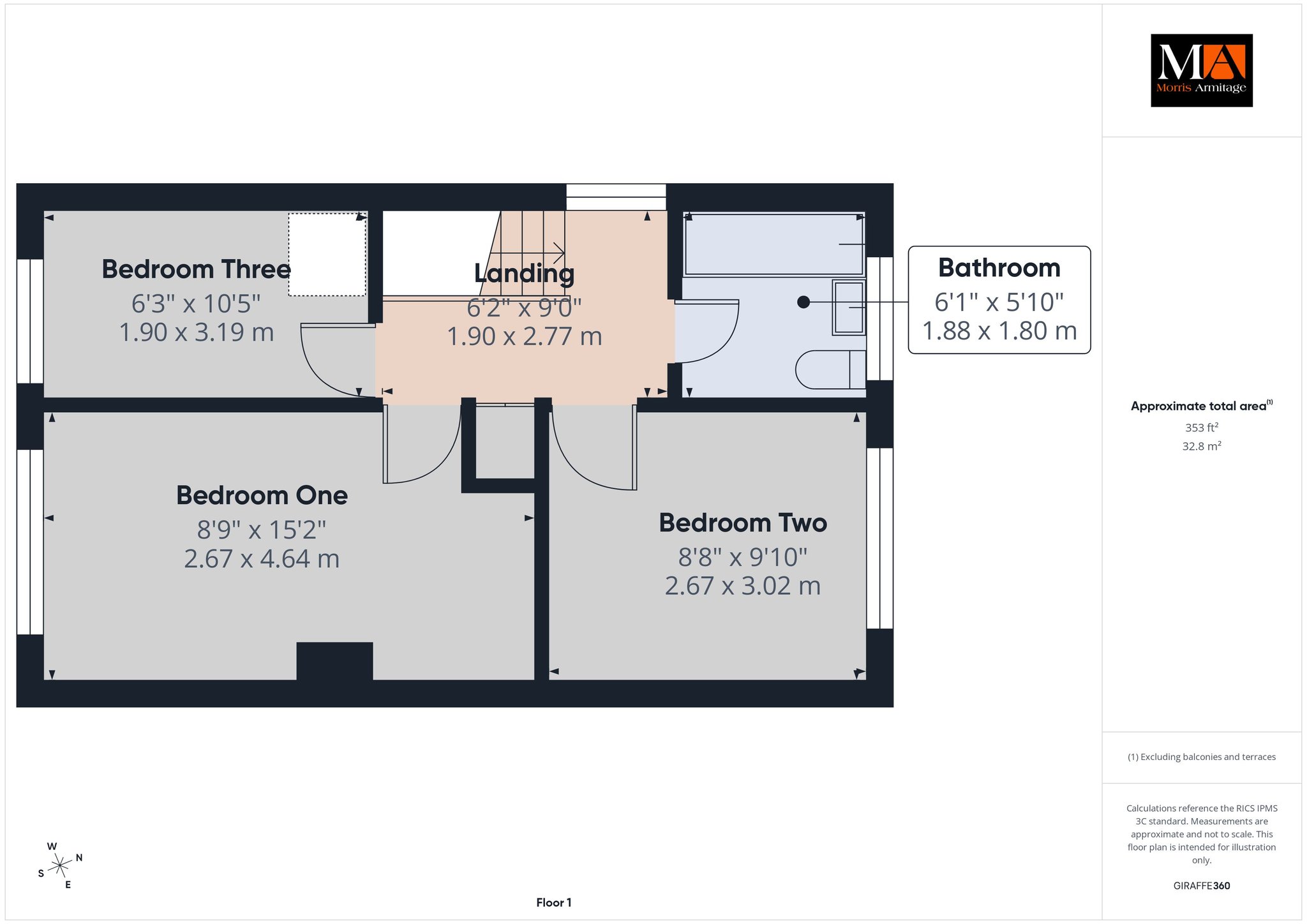 Bedroom Three 10’5” x 6’3” (3.19m x 1.90m)
