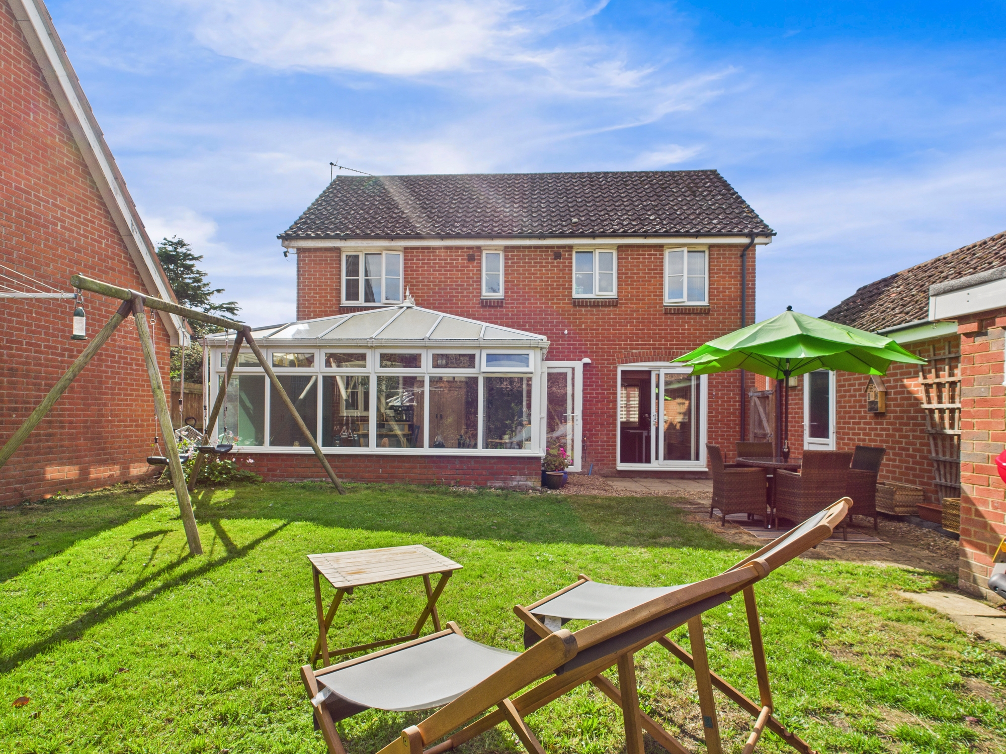 A detached, 4-bedroom home, situated at the beginning of one of the smaller, more established cul-de-sacs within the town. Furthermore, as it occupies a larger plot, it is able to offer generous levels of both parking and garden. Inside, the property enjoys a traditional layout, ideal for family living; there is a spacious entrance hall, and leading from this are 2 reception rooms, a cloakroom and a kitchen which, over the years, has been refitted and modernised. The separate utility has also been overhauled. The lounge extends to almost 18ft in size and befits from having a double aspect with double opening patio doors opening onto the garden. Adjoining the back of the house, a conservatory extends across measuring 15ft in size. Upstairs, leading from an open landing, there are 4 well proportioned bedrooms, 2 of which have built-in wardrobes, with the largest room also having an en-suite. Outside, the generous frontage provides front lawn, private driveway for vehicles and a garage. Around to the rear, there is a pleasant and enclosed garden providing a high level of privacy along with lawn, seating, and patio areas.