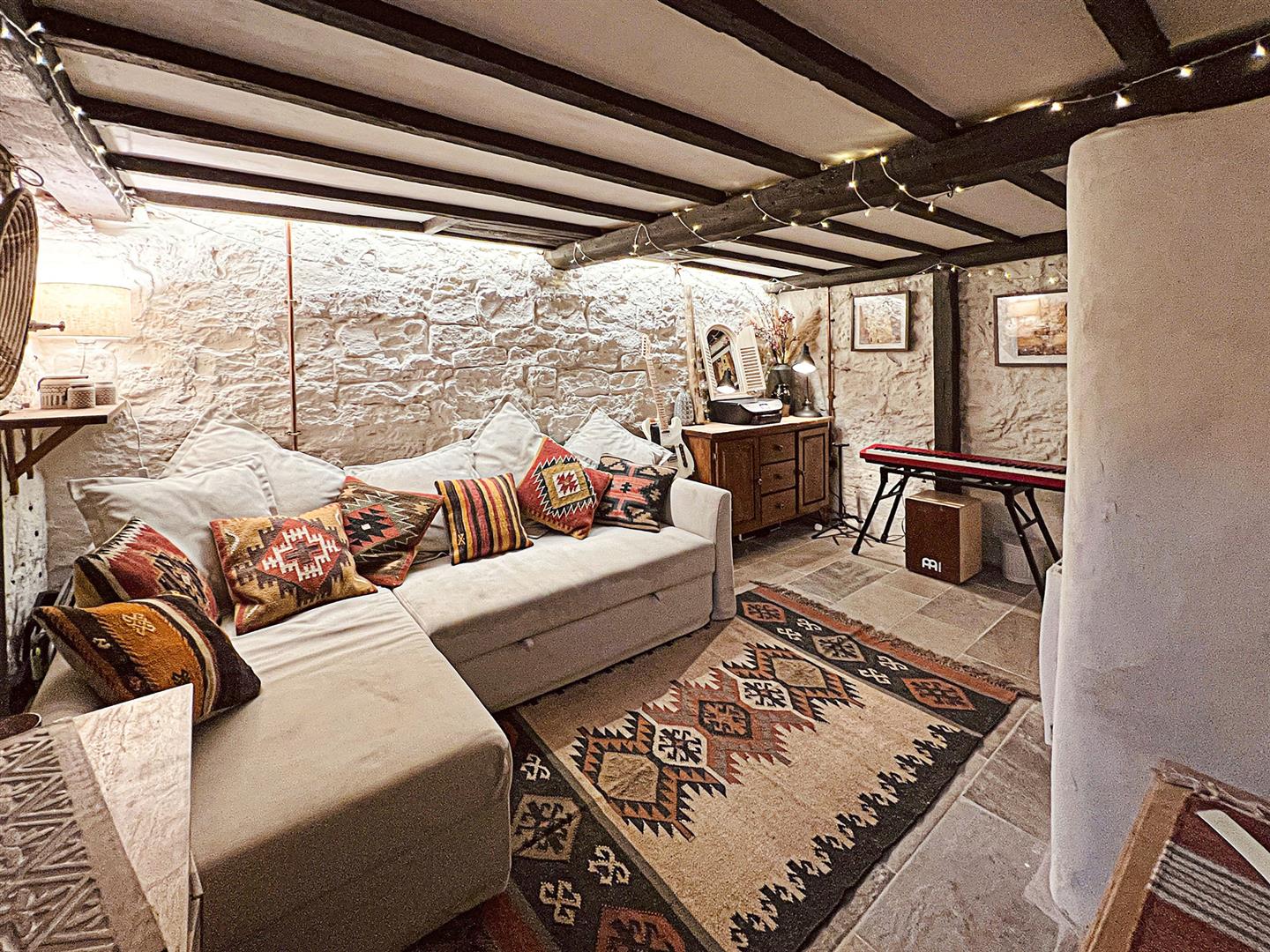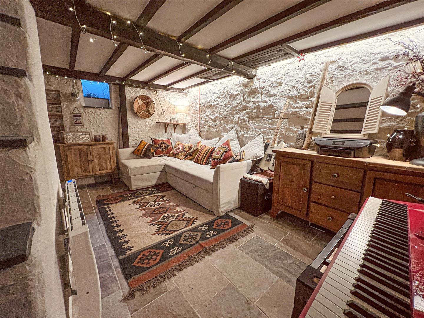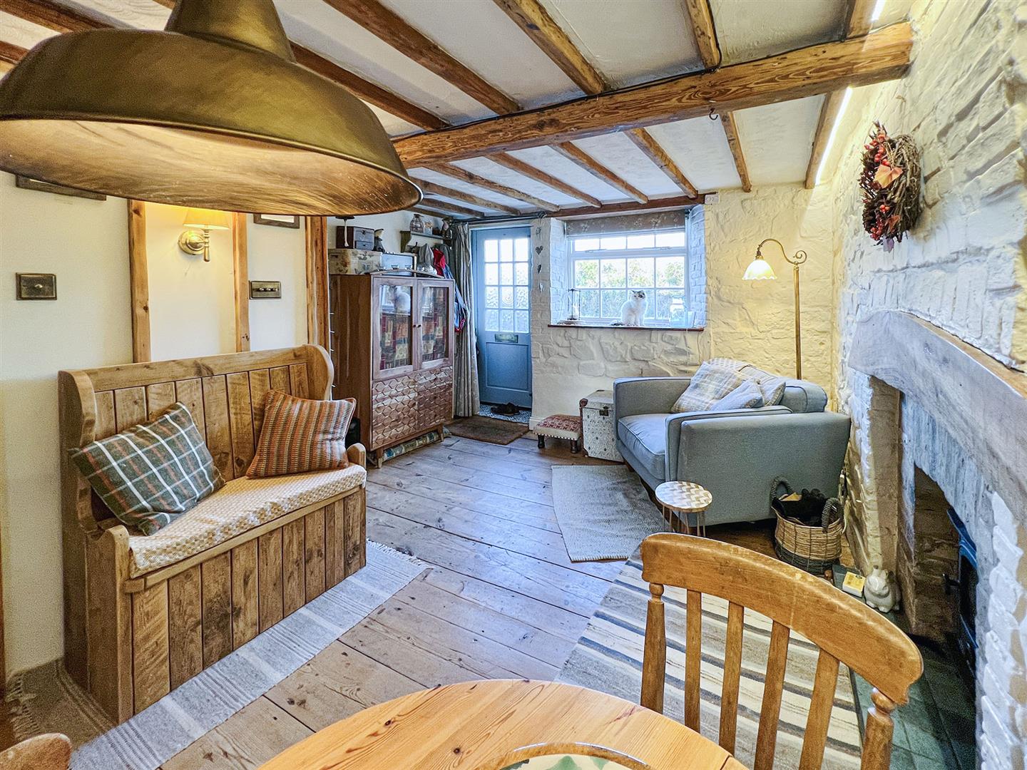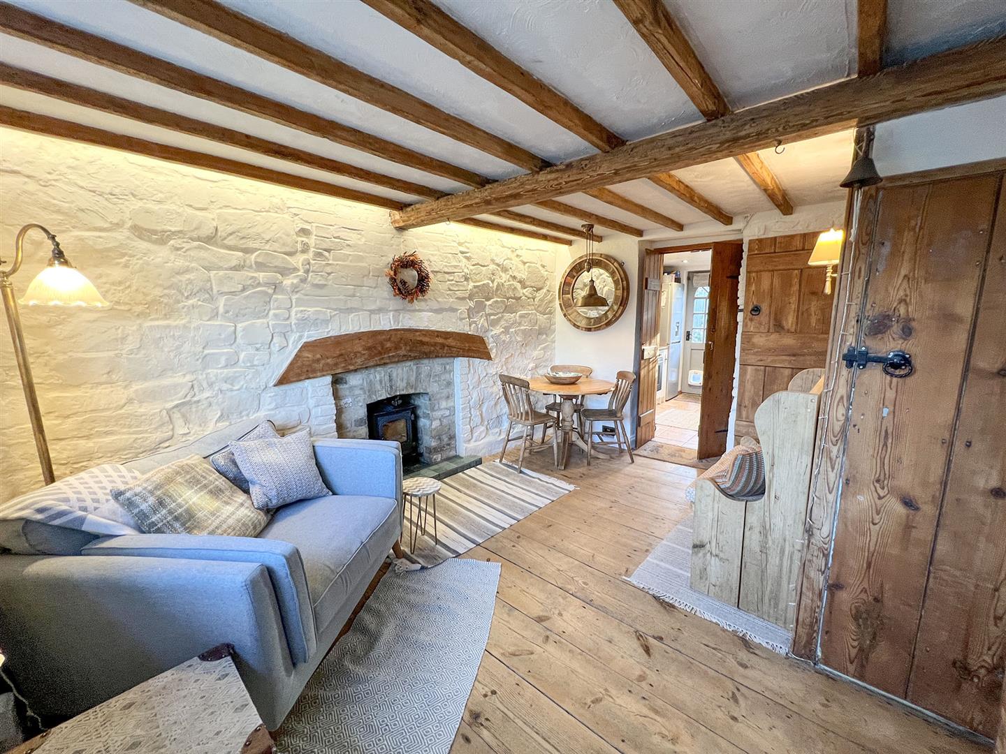Multi-fuel burning fireplace, TV point, ECO electric radiator, recessed LED lighting, timber beams, wood flooring, window to the front aspect, door leading through to: