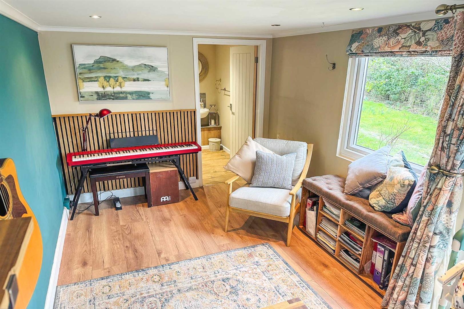 Fully insulated, complete with lighting, high speed internet connection, wood flooring, double glazed window to the side aspect and sliding door to the garden, door leading through to: