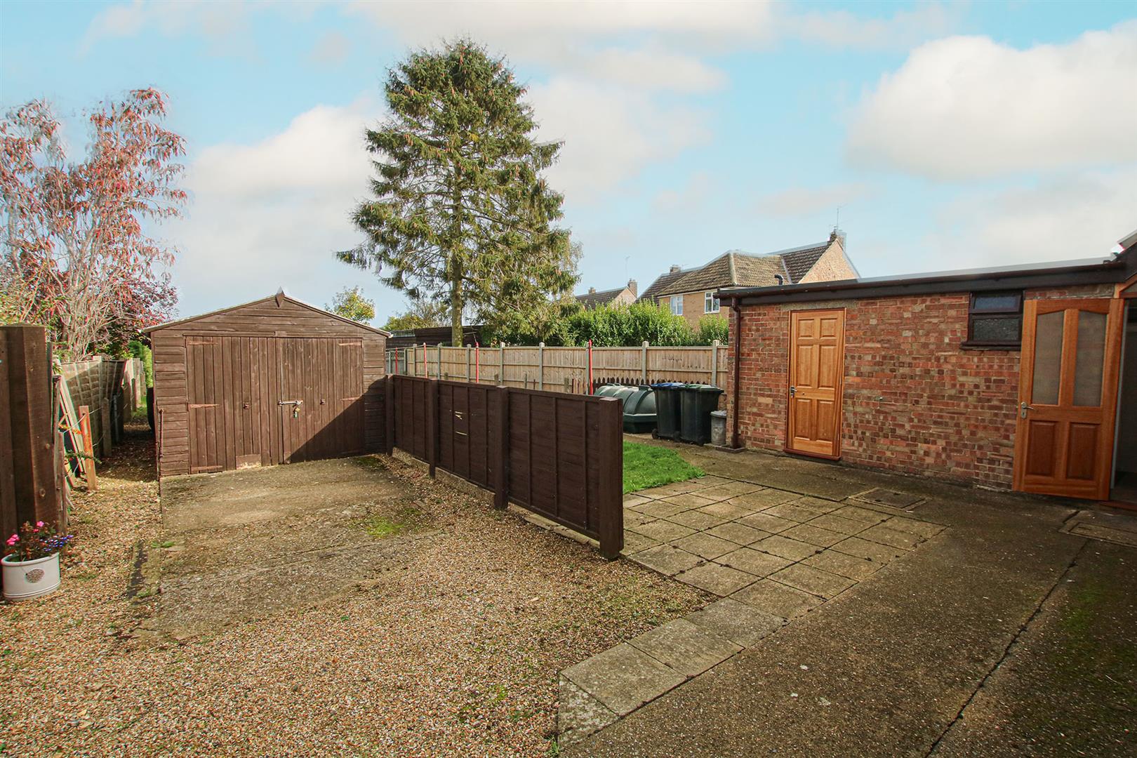 Lawned area with gravel and shrub borders. Hard standing path leading to half glazed front door and rear garden. Driveway providing ample off road parking.