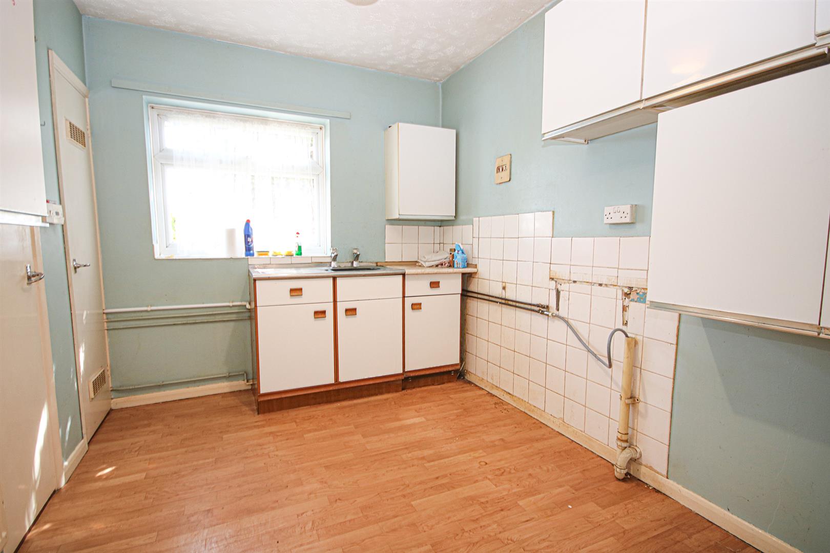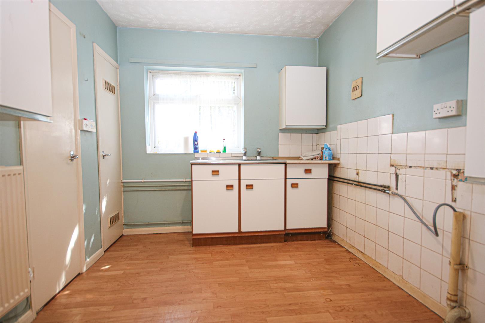 Generous kitchen with some fitted storage cupboards. Stainless steel sink and drainer. Built-in storage cupboards. Radiator. Window to rear aspect. Door to entrance hall.