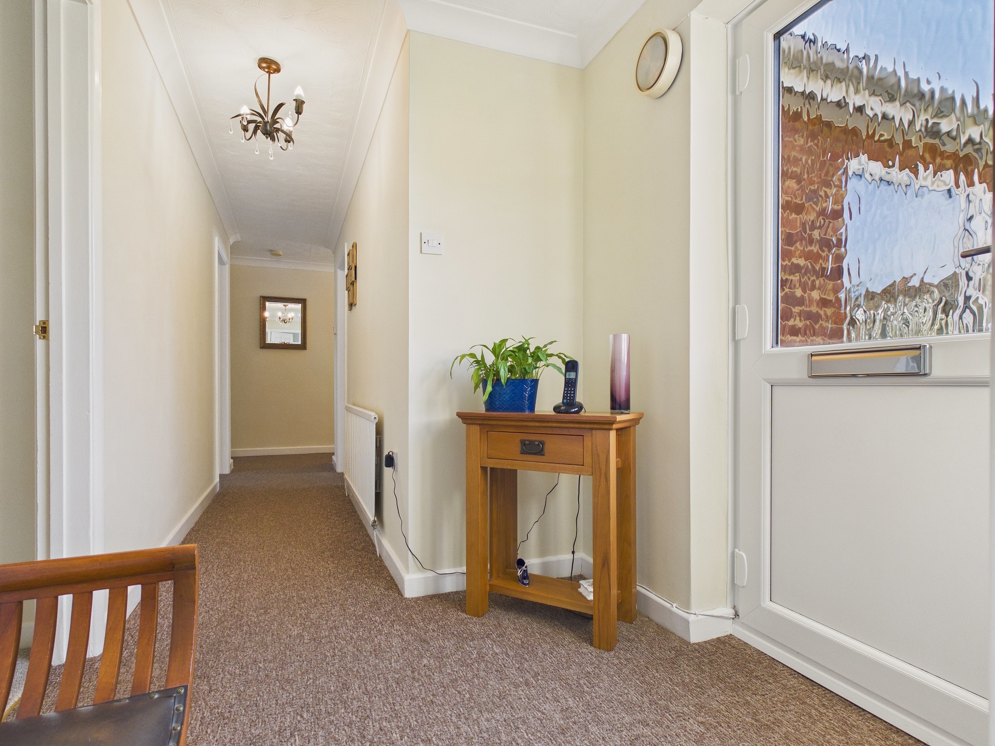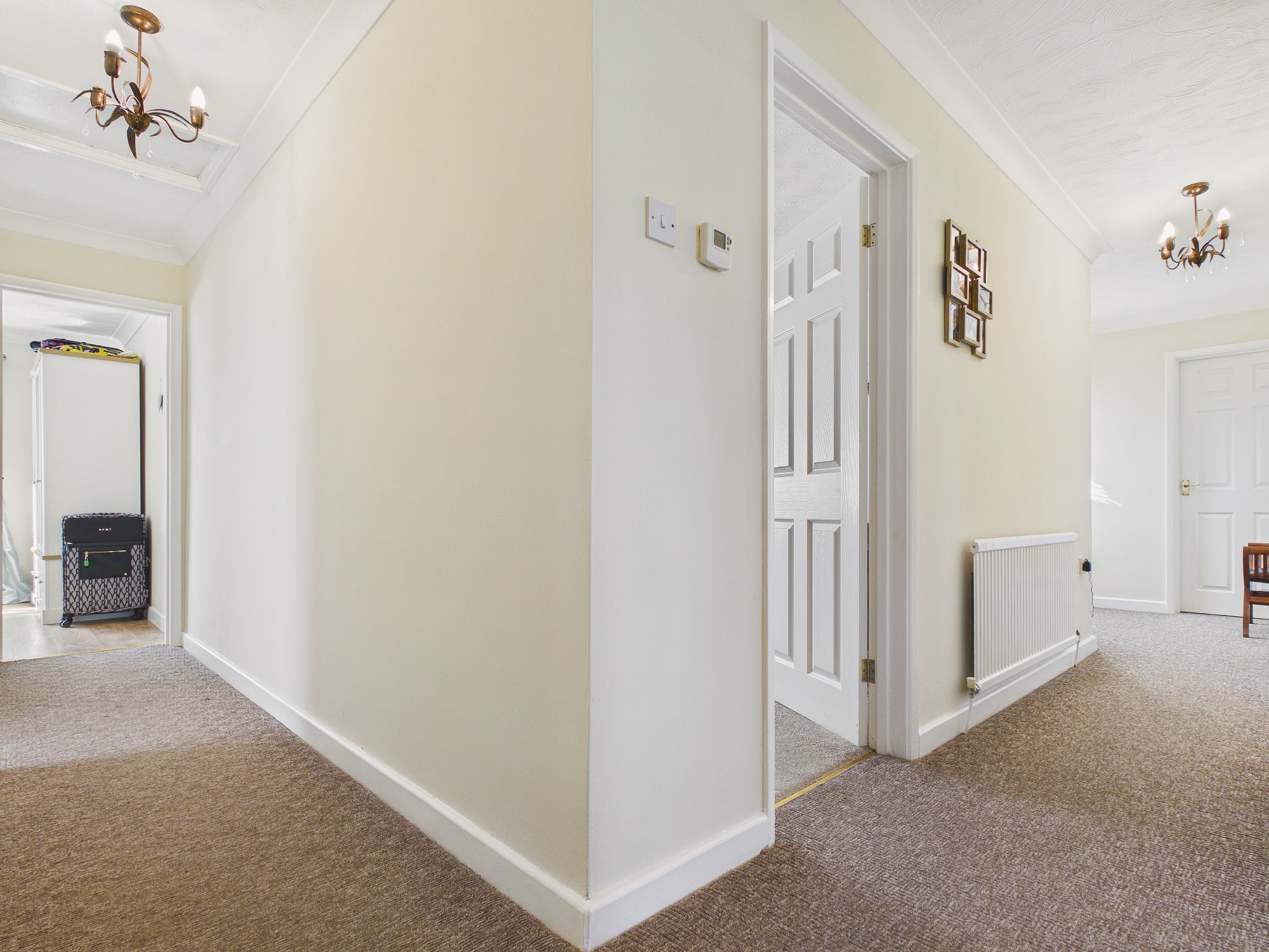 Wall mounted single panel radiator, textured and coved ceiling, loft access, door to airing cupboard housing hot water cylinder and shelving, door to walk in storage cupboard with uPVC double glazed window to front, doors to all rooms.