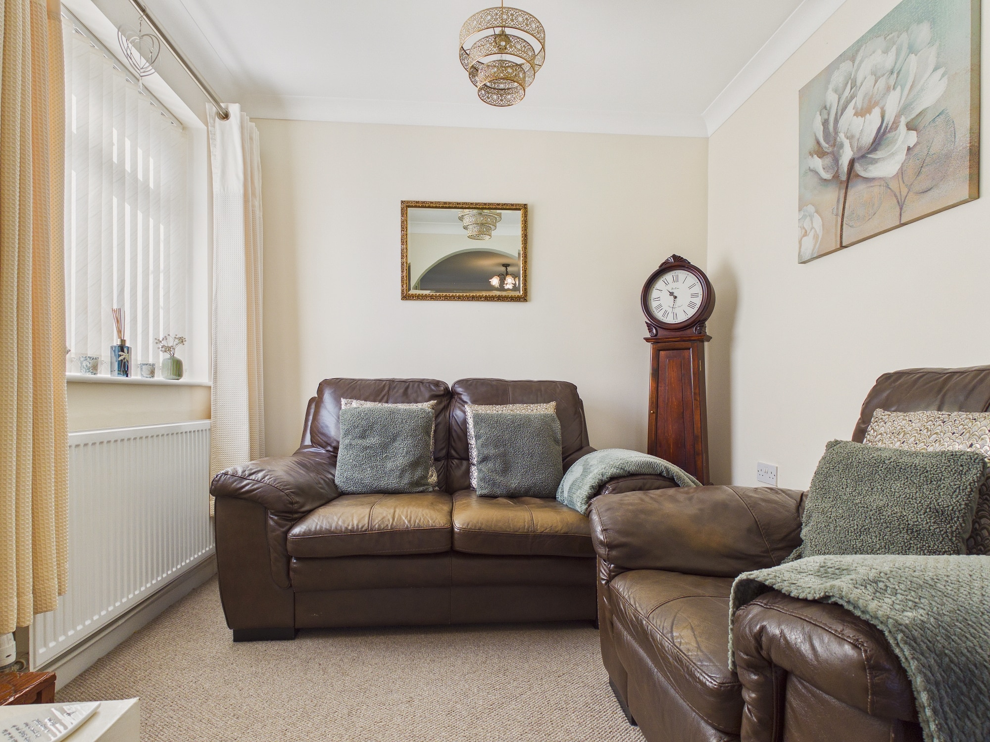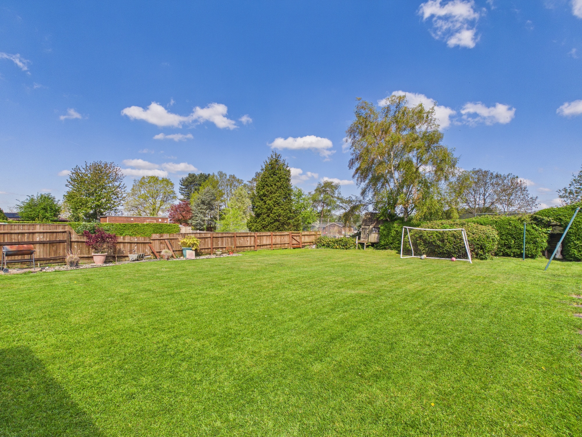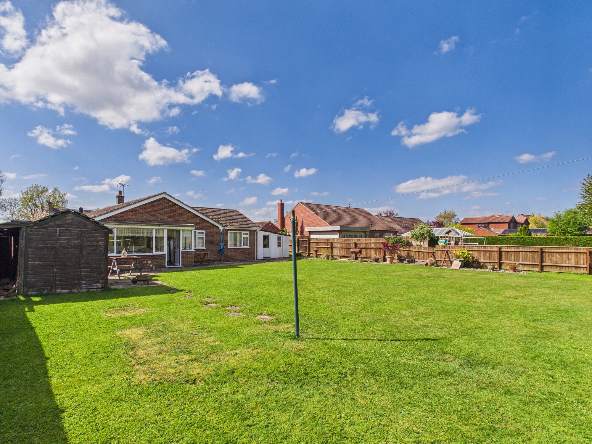 The front of the property is laid to lawn. The shingle driveway provides off road parking. There is also a wooden garage with double doors and personal door to the rear garden. To the side of the property double gates lead through to a further area laid to shingle with a decked area and door to kitchen. The rear garden is spacious and mainly laid to lawn with wooden storage outbuildings inset.