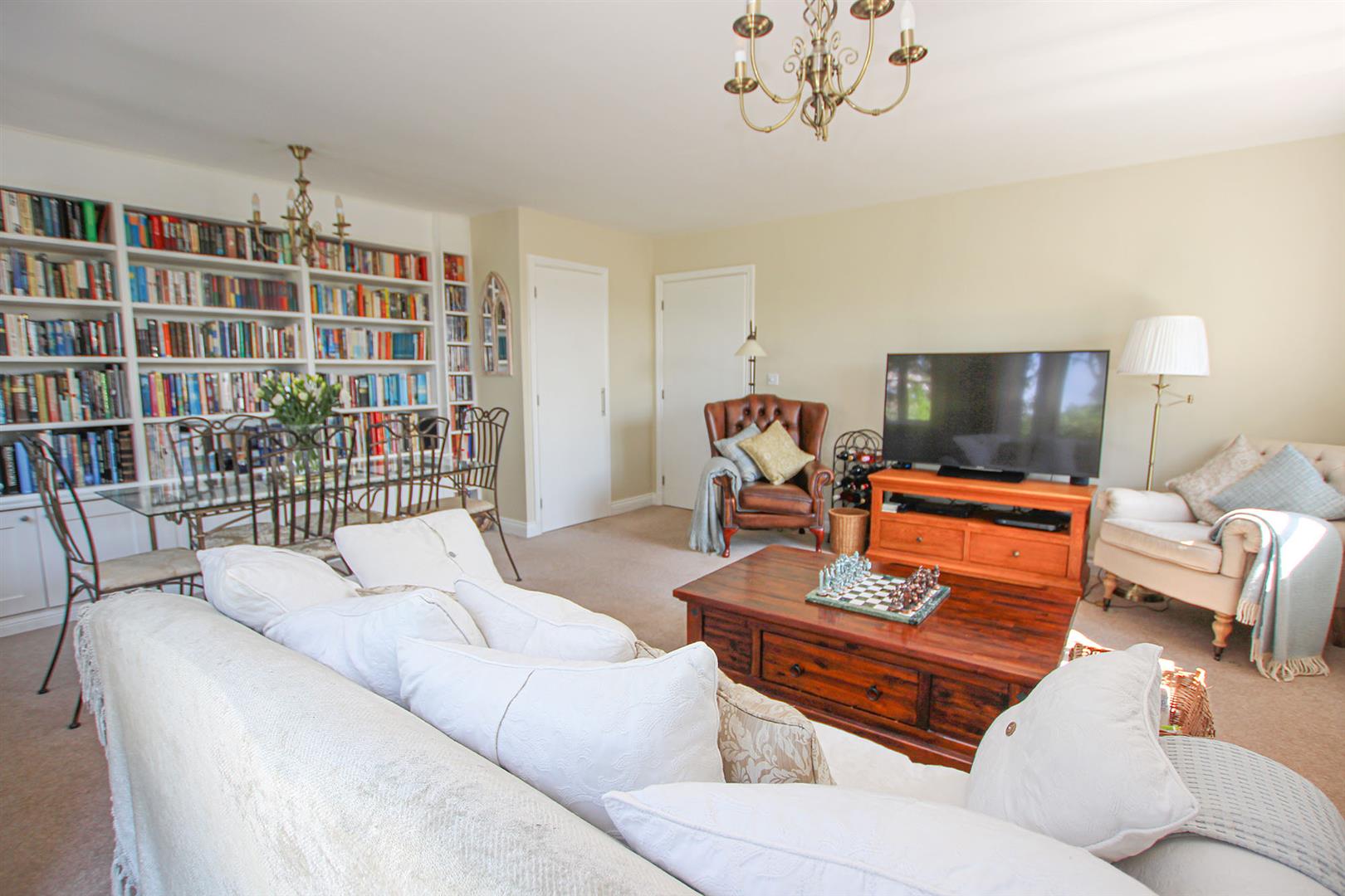 Beautifully presented, spacious living/dining room with dual aspect windows overlooking the rear and side gardens. French door with glazed side panels leading to rear garden. Bespoke built-in book case. Two double radiators. Doors leading to entrance hall and under stair cupboard.
