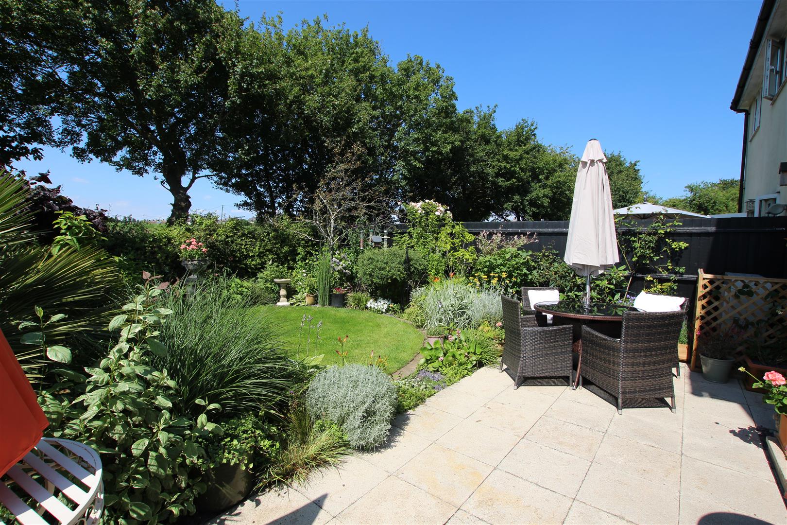 Charming garden with patio area off living/dining room. Central, well maintained lawn area surrounded by well stocked flower and shrub beds. A further patio/seating area with an array of planting to the side of the property. Boundary fence and hedging with views over open countryside. Access gates to the fields at the rear and to the front.